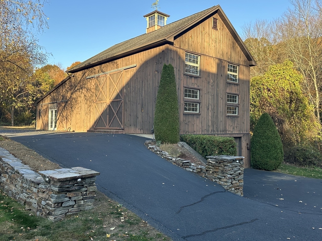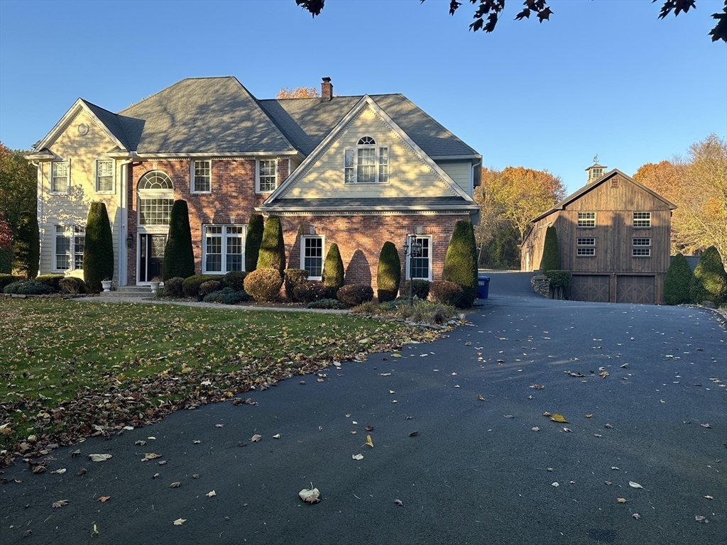 Stunning Colonial set on a private 1.38-acre lot with beautifully landscaped grounds and an impressive 3,200 sq. ft. barn—perfect for hobbies, vehicles, or a workshop! This elegant home features 7-inch crown molding, hardwood floors throughout the first level, and wainscoting in the formal dining room. The gourmet kitchen with Viking appliances opens to a bright family room, ideal for entertaining. Step outside to an oversized patio overlooking a serene backyard designed for indoor/outdoor living. A formal living room with French doors offers flexibility as an office or study. The spacious primary suite includes a whirlpool bath and walk-in closet, while two additional bedrooms and a full bath complete the second floor. The finished lower level offers a sauna, wet bar, and full bath for ultimate relaxation. The 3-level barn with an attached shed and heated finished room provides endless possibilities—this property truly has it all!