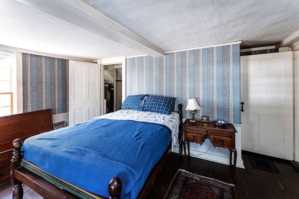 Built in 1728, the Webster-Sawyer-Smiley House is an iconic example of early 18th century American architecture known as a "salt box" with a distinctive roofline and charmingly simple facade. This 8-room second period home, with 4 bedrooms and 2 baths, is an outstanding blend of period details and modern amenities. The interior offers many original features including the classic center chimney, 5 fireplaces with original mantles, period paneling, Indian shutters and 18th century hardware. Additional highlights are a remarkable bullseye transom over the front door and wide pine floors. The home offers a 1-car garage with loft storage and a large private back yard. Located on 2 acres within a short distance of Route 495 and the New Hampshire border, this historic home has proudly sat at the 994 Main Street, Haverhill, Mass. location for nearly 3 centuries. Its owners have included important Haverhill families that play prominent roles in history. A local landmark. Ideal for the purist.