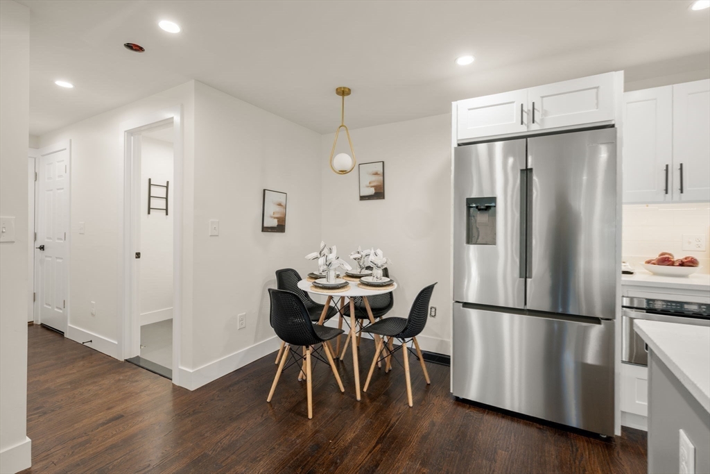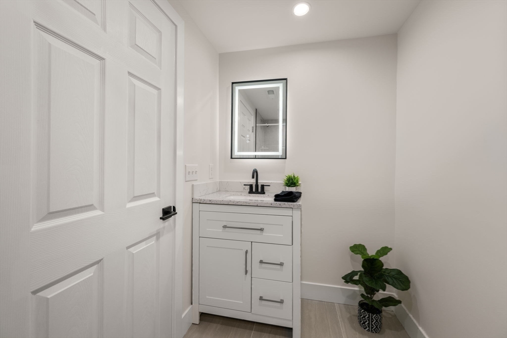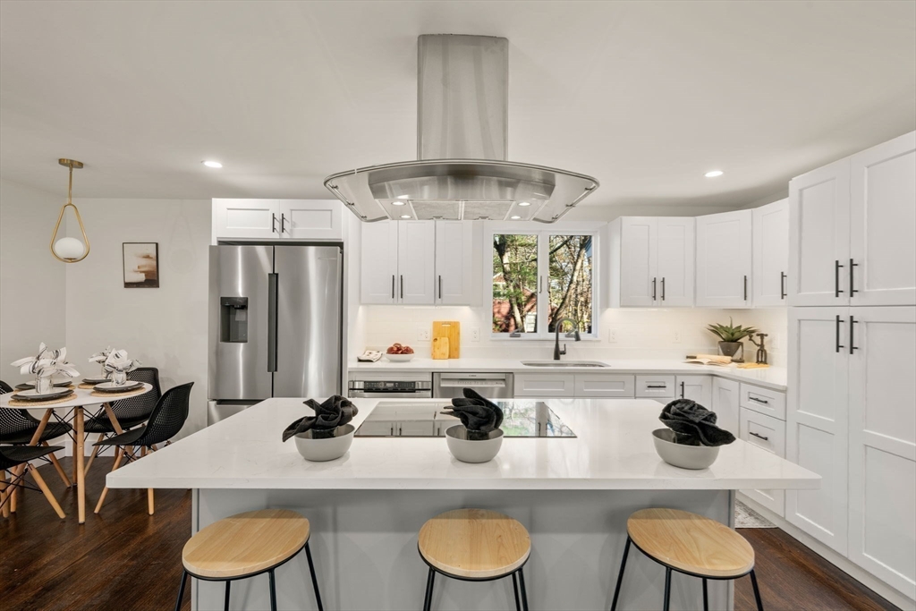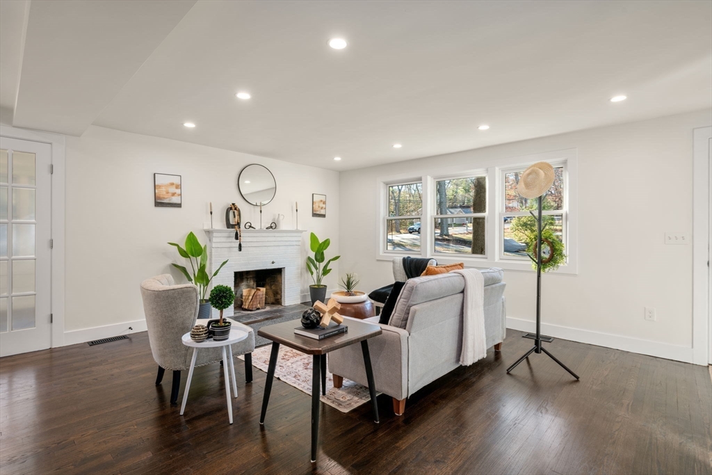 This is a beautifully renovated 4 bed, 2.5 bath colonial that has undergone a full interior renovation with all new systems, finishes, and modern features. Open concept first floor with living room & fireplace, kitchen with stainless steel appliances, induction cooktop, hood vent, quartz countertops, breakfast bar, and dining nook. Enclosed side porch can be formal dining room or flex space. Half bath and laundry room complete the first floor. Second floor features spacious primary bedroom with ensuite bathroom & walk in closet. Two additional bedrooms and bathroom serve the upper level. Lower level is finished, providing a flexible space for a playroom, workout area, or media room. Central AC, recessed lighting, and hardwood floors throughout. Detached two car garage with ample storage and workshop area. Half acre corner lot in a cul de sac neighborhood abutting conservation land. Easy access to walking trails, Thoreau School, Rideout Playground, Rt 2, and West Concord Train Station