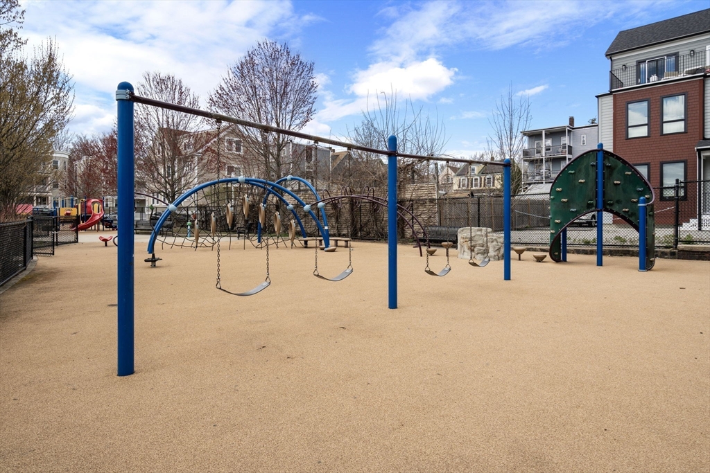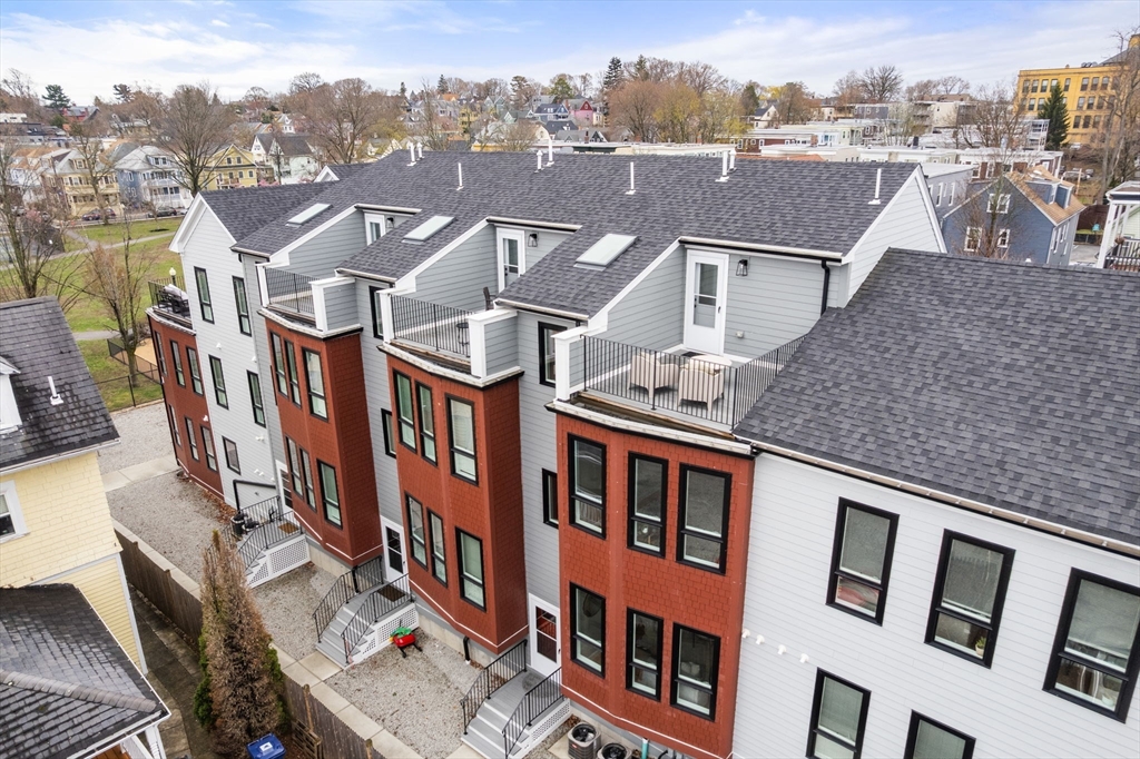 OPEN HOUSE SAT 12:30-2 PM! Stylish and spacious 2021-built townhouse offering 4-levels of modern living, perfect to plant your roots & for city commuters. The main floor features a bright, open layout w/sleek kitchen—white quartz countertops, center island, subway tile backsplash & stainless steel appliances—plus dining, living & half bath. Upstairs, enjoy 2 spacious bedrooms w/large built-out closets, full bath, laundry & West private deck. The top floor is a luxurious primary suite w/skylights, 2 walk-in closets, en-suite bath & 2nd East private deck. Lower-level den offers flexible space for office, gym, media or playroom. Covered parking included. Tucked just off Dot Ave near Ashmont, Adams Village & Dorchester Center - 1/10 mile to Shawmut Red Line, 1/2 mile to Talbot Commuter rail, plus shops, restaurants & Loesch Family Park just outback w/farmers market on Saturdays. High-end finishes, thoughtful layout & unbeatable location make this a true urban retreat. Must see!