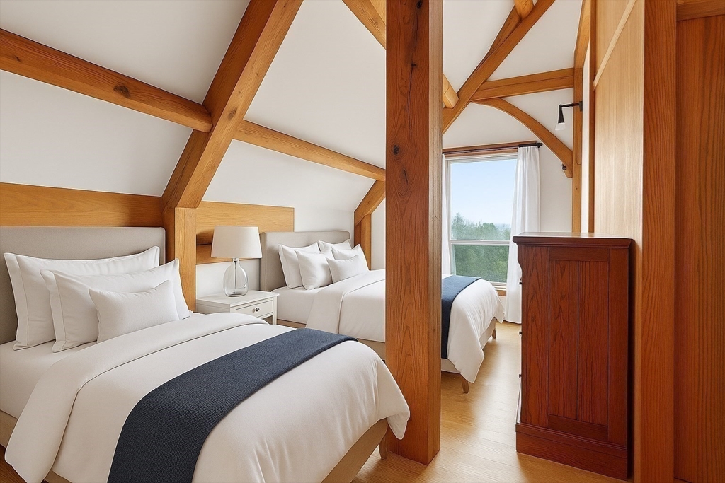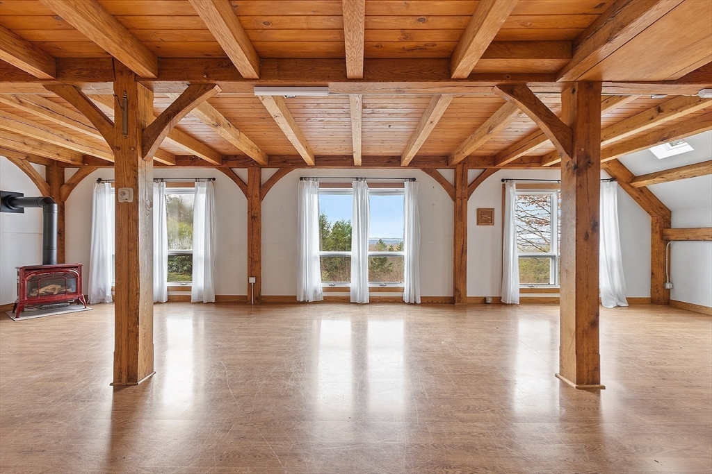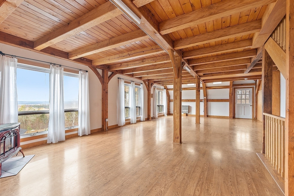 Discover unmatched privacy and sweeping mountain views on 230+ acres with 2,000+ ft of pristine Secret Lake frontage. Custom built as a fully self-sufficient luxury retreat, this post-and-beam Contemporary offers active solar power, an artesian well, and a generator for true year-round independence. Inside, soaring ceilings, exposed beams, and a massive floor-to-ceiling stone fireplace create a warm and timeless atmosphere. The gourmet kitchen features a Grand Herald stove and a full prep kitchen—ideal for hosting, entertaining, or creating incredible meals against a stunning natural backdrop. The private main suite includes its own balcony with breathtaking views. Multiple decks and an interior balcony capture light, scenery, and serenity from every angle. Heated 2-car garage plus additional storage for vehicles or boats. Convenient to Routes 2/32/202 with easy access to VT/NH. Ideal for retreat property, campground, seasonal waterfront homes, or future recreational use.