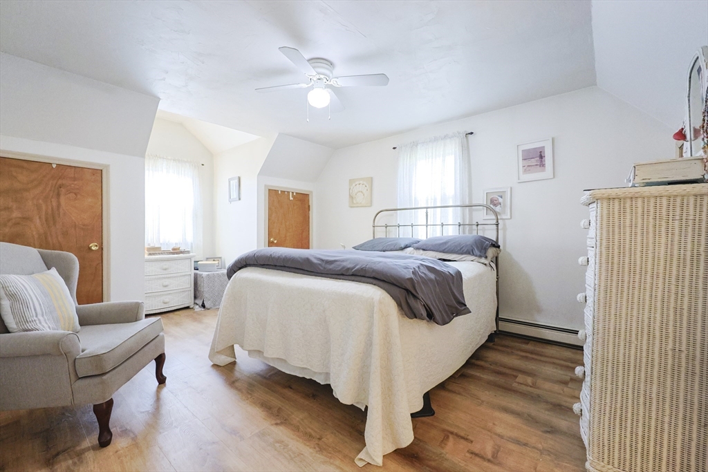 Welcome to this inviting Cape-style home offering 3 bedrooms and 2.5 bathrooms on a spacious .67-acre lot. This charming home features an open eat-in kitchen and dining area on the main level of the home, perfect for everyday living and entertaining. Newer stainless-steel appliances included. Bedroom and full bath on the first floor provide easy living. A generous size main bedroom and guest bedroom on second floor with 2nd full bath. A cozy living room with a fireplace adds warmth and comfort, while the bonus sunroom with a wood stove provides a relaxing year-round retreat. The mostly finished basement offers additional flexibility for storage, playroom, or extra living space, and includes a half bath and laundry area for your convenience. Outdoors - enjoy a large backyard with a private patio area, ideal for gatherings, gardening, or simply enjoying the surrounding nature. This well-maintained property offers classic charm with modern updates—ready to welcome its next Owner!