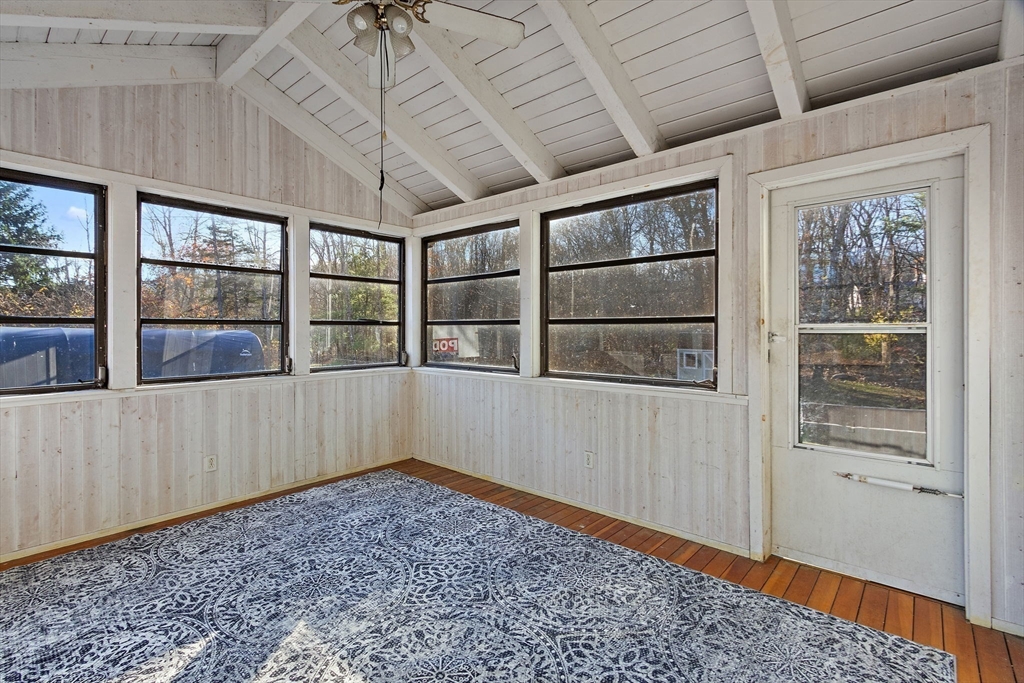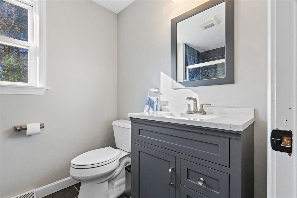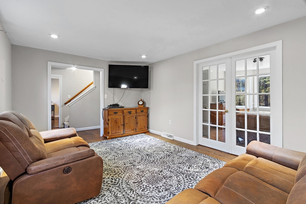Your home for the New Year! This home is move-in ready! Upgrades include: refaced kitchen cabinets-granite counters-SS appliances-new paint througout-new carpet upstairs- a newer roof, cedar siding& heating system. Want more!? Step into your 3 season porch, filled with windows, leading to the newly finished HDWD floor living room with a cozy fireplace. Adjacent to this space, you'll find an updated half bath. The living room opens to the modern kitchen, bathed in natural light. A spacious family room with French doors that connect to the dining room completes the first floor. Upstairs, discover an expansive primary bedroom w/ Juliet balcony, along with two additional generously sized bedrooms and updated full bath featuring a tiled shower. The walk-out basement offers endless possibilities for a home office, teen hangout, gym or game room. The large yard is perfect for family gatherings and outdoor activities. Conveniently located near Route 1, 495, shopping the outlets and Pat Place!