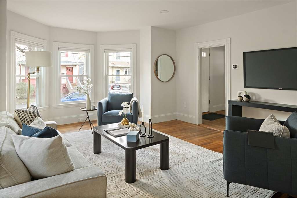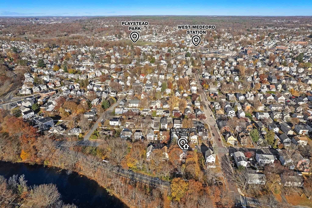 Welcome to 69 Arlington St in West Medford! This updated 5-bedroom Colonial sits in a phenomenal location across from Dugger Park, Amsell Playground and the Mystic River Path in West Medford, and it offers quick access to Boston via the Mystic River Parkway, I-93 and the commuter rail. The main level features a sunny, comfortable living room with a large bay window and sumptuous hardwood floors. The formal dining room is also a standout with the same beautiful hardwood and designer wallpaper. Next up is a well-configured kitchen that overlooks the spacious backyard and features granite countertops, a tiled backsplash and stainless-steel appliances. The second and third floors offer FIVE sizable bedrooms, an updated bath, and an office that could be converted to an additional bath. This turn-key home also offers central HVAC, a detached garage, a new dishwasher and gas water heater and great proximity to the shops and dining of both Medford and Arlington.