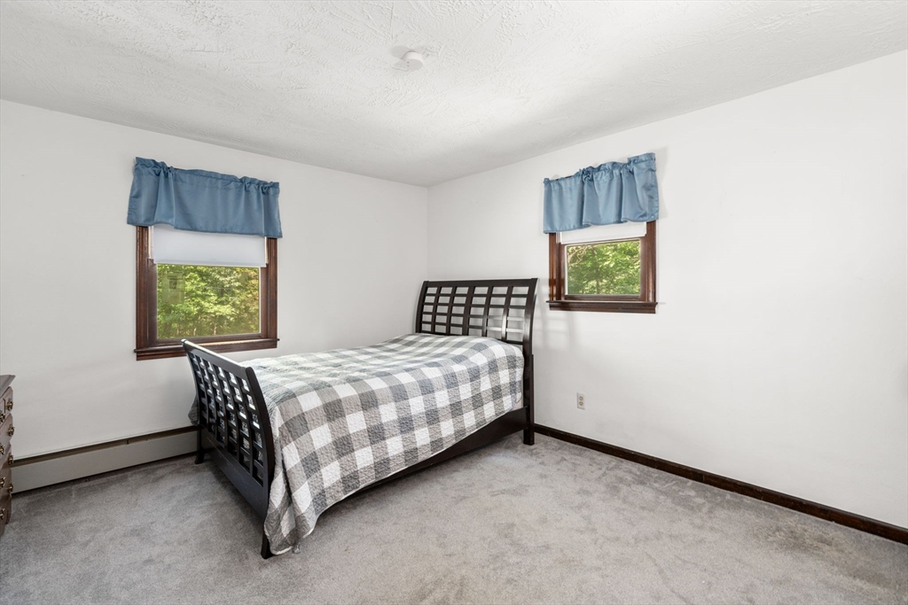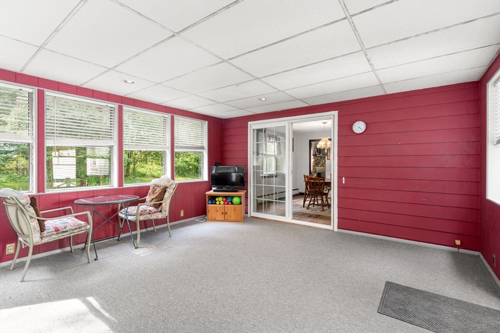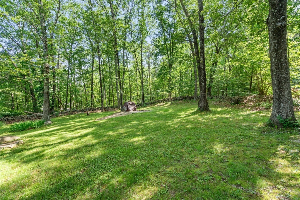 Welcome to 215 Chestnut Street, a spacious split-entry home on a private 1.64 acre lot in a quiet area of Uxbridge. This property offers three bedrooms, one and a half baths including an ensuite half bath, and over 1,400 square feet of living space. The main level features a bright living room with a wood burning fireplace insert, laminate and carpet flooring, a spacious kitchen with stone counters, and a separate dining room with access to a huge sun and screen room overlooking the yard. The lower level includes a finished bonus room and a 400 sqft partially finished second living area with a beautiful stone fireplace that is ready to be brought back to a cozy and inviting space. Updates include a roof from 2021, a well pump from 2022, and an oil tank installed in 2024. Solar assisted hot water is also in place. Set on a large lot with excellent privacy and located minutes from Blissful Meadows, Route 146, and downtown, this home offers space, character, and great potential