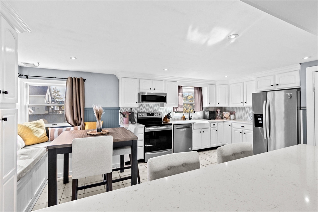 Fall in love with this beautifully updated split level home that truly has it all! The first floor features a stunning kitchen with tile flooring, stylish backsplash, stainless appliances, and a cozy built-in dining nook. The open living room adds charm with a fireplace and custom built-ins, perfect for relaxing or entertaining. Upstairs you’ll find 3 generous bedrooms with gleaming hardwoods and a refreshed full bath with shiplap walls. Need more space? The lower level offers a versatile family room ideal for a gym, office, playroom, or 4th bedroom and also has a laundry room, utility room and walkout to a 3-season screened in porch. Other features include a welcoming front porch, 1-car garage and many updates throughout: new central AC, furnace, ROTH oil tank, hot water tank, metal chimney liner, recessed lighting and living-room windows. All in a fantastic location near the rail trail, with easy highway access and just 2 miles from the Abington Commuter Rail.