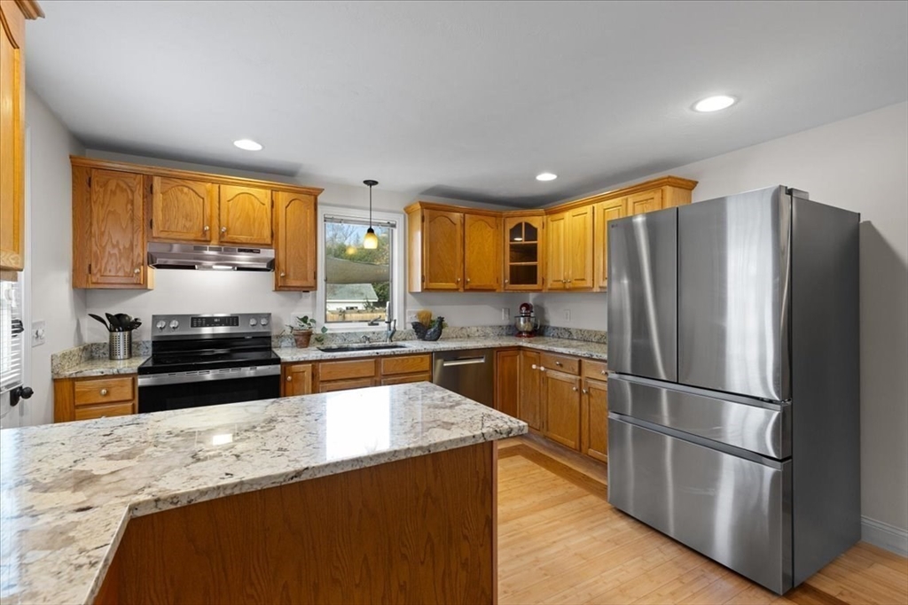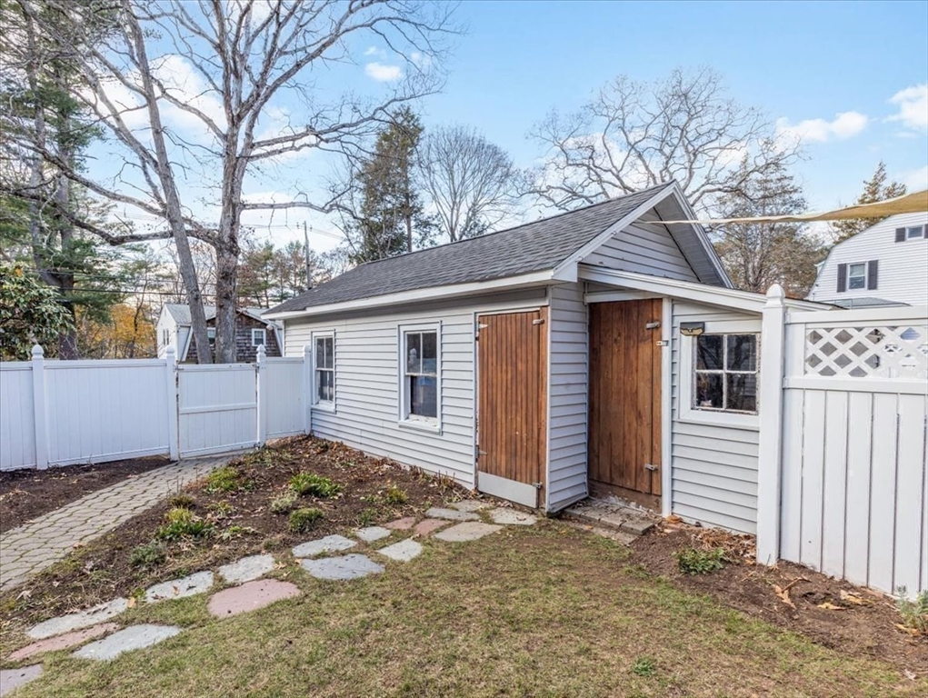 Welcome home to this picture-perfect Cape with a separately attached in-law apartment in a highly sought-after Walpole neighborhood. The main home offers a bright, and flexible floor plan. The large kitchen with ample cabinetry, a fireplaced living room, an office/bedroom, a full bath, and a laundry room, complete the first floor. The second floor featuring a primary bedroom, full bath, and two additional bedrooms. The in-law suite, has its own private entrance which includes two bedrooms, one bath, a cozy family room, and an open kitchen area. Hardwood floors run throughout, and the private fenced-in backyard with a patio provides an ideal space for outdoor enjoyment. Many updates! Conveniently located near schools, shopping, highways and more!