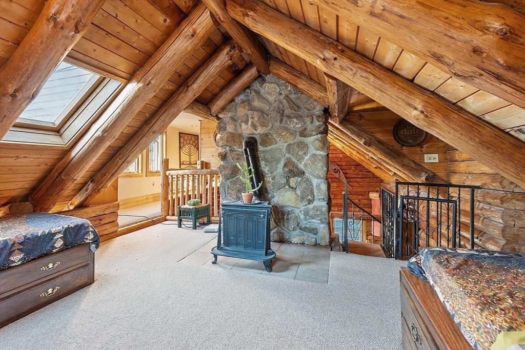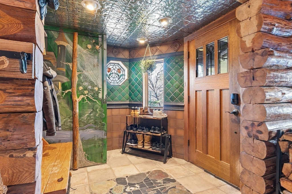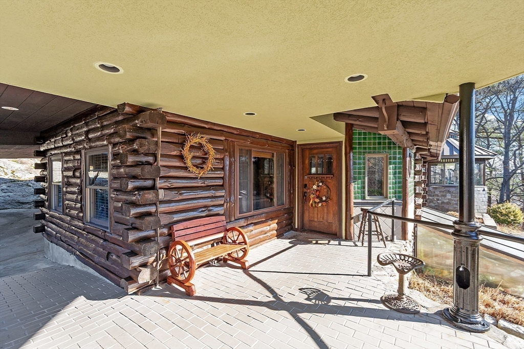 Could this be the most unique home in Fitchburg? Exceptional log cabin showcasing quality craftsmanship and unique details throughout. Features include stained glass accents, custom tile work, and onsite-milled lumber. The spacious kitchen offers an eat-in island with granite countertops, custom cabinetry, tiled backsplash, stainless steel appliances, and a Viking stove with pot filler faucet. Enjoy outdoor living with an inground pool, pool house, and steam sauna. The primary suite includes a private balcony, sitting/workout area, and a bath with double vanity. Additional highlights: screened-in back porch, front porch, separate three-car garage with heated workspace above, five bedrooms, three baths, and a heated bonus room in the basement. Extras include a greenhouse, oil/wood/coal furnace, carport, and an additional deeded lot. New roof installed in 2020. Handicap accessible. Purchased Solar Panels for reduced electrical bills.