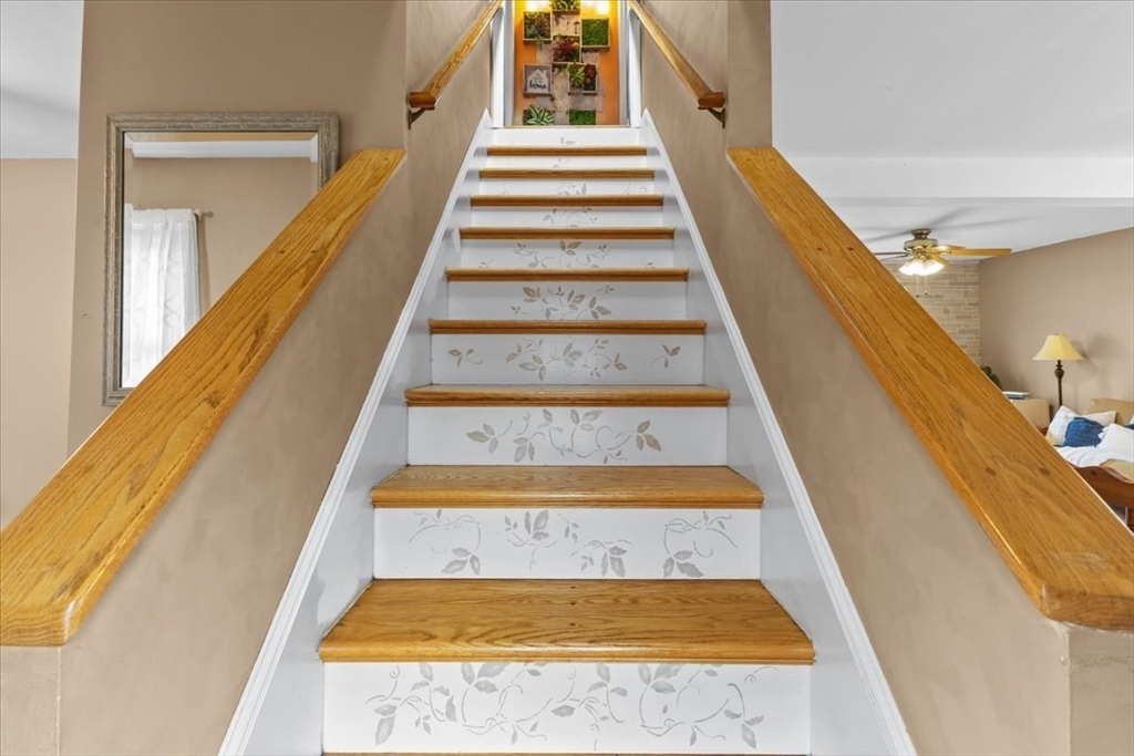 Situated near the end of a cul-de-sac, this picturesque Cape welcomes you! In the kitchen you'll find new appliances, updated countertops, and plenty of space for a breakfast table or mudroom setup! Relax in the expansive living room, featuring a fireplace that promises cozy evenings, and loads of windows to enjoy the sunny days! Rounding off the first floor is a full bathroom with a modern touch-free toilet. Upstairs you'll find 3 bedrooms and a luxurious bathroom that features a walk-in glass shower with FOUR shower heads! Enjoy a spa-like experience every day! The primary bedroom is a charmer with its sunny window seat, great storage space, and walk-in closet. Lower level boasts a NEW heating system, finished office, laundry room, and recreation space. But the real show stopper is found outside when nature is in full bloom! Gorgeous trees and perennials surround the fenced yard with gazebo, cabana, koi pond, swings, and more! Conveniently located close to 495, this is a true gem!