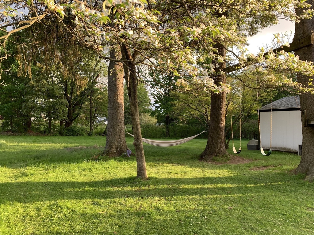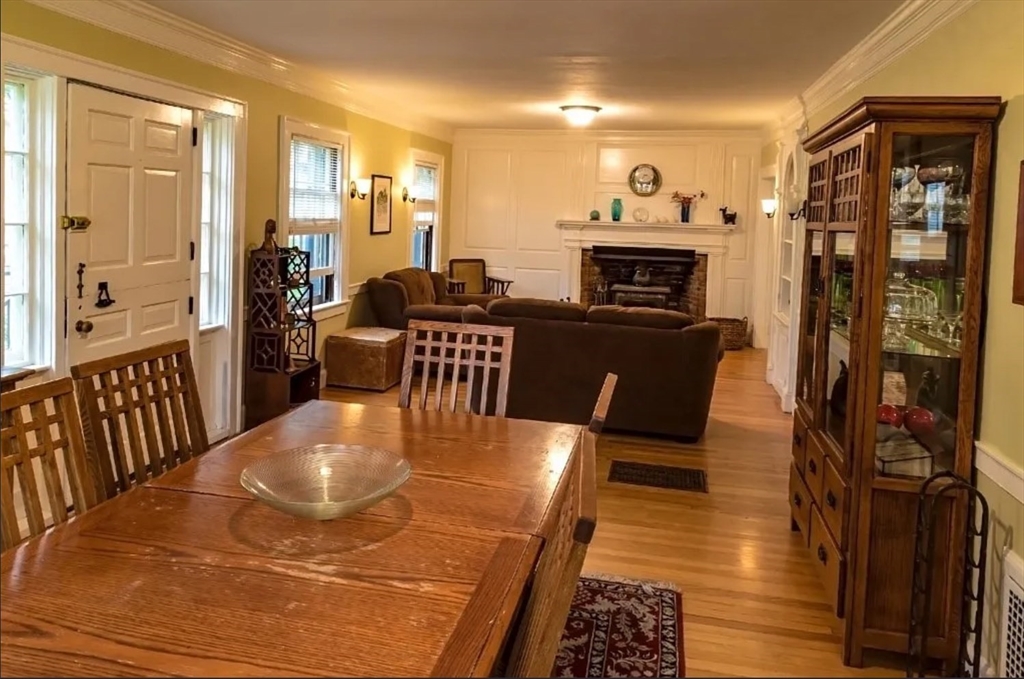 In-town, classic Bill Gass Colonial built for his own family on a sweet tree-lined residential street close to town. Here you'll find a circular floor plan and large, versatile LR, high ceilings, crown moulding & updated eat-in kitchen w/ SS appliances. A spacious, heated Sunroom w/ sliders leads to an expansive deck, stone sidewalls, brick patio & a private, deep lot w/ mature trees and chemical free lawn & gardens. Upstairs are 3 spacious, light filled bedrooms & Bath. The LR wood stove easily heats the home although there are multiple heat sources to draw from-if so desired. Hardwood floors throughout. The Great Room addition w/ massive fireplace is the actual Potter Schoolhouse; dismantled & moved from Enfield, MA prior to the flooding for the Quabbin Reservoir. It offers beamed ceilings & views of Mt Sugarloaf. Nearby is the beautiful Tilton Library, Restaurants, Shopping, Recreation, 5 College area, private schools & access to major crossroads. Open House: Nov 22/23 from 12-2 pm.