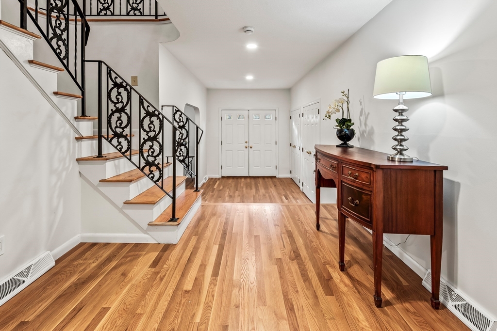 A striking columned entry & grand foyer make a memorable first impression, setting the tone for this gracious colonial blending timeless style w/ comfortable everyday living. Spacious formal living room, sometimes used as a dining room for larger gatherings, pairs beautifully w/ the casual family room w/stone accent wall, built-in desk & sliders to back deck. Cabinet-packed kitchen offers abundant workspace/storage, w/ bright breakfast area out to the deck that spans the full back of the home. Plus formal dining room, 1st flr laundry room & an updated powder room. Upstairs, the primary suite offers beautifully remodeled bath & dressing room/walk-in closet. 3 addt’l bedrooms are complemented by an open study w/ built-ins/storage, ideal for working from home. Unfinished basement & 20’-ceiling garage provide ample storage. Set on a corner lot, w/ dual driveways this home offers both presence & practicality! Near Framingham Country Club & quick Rte 9 access. All this & More - WELCOME HOME!