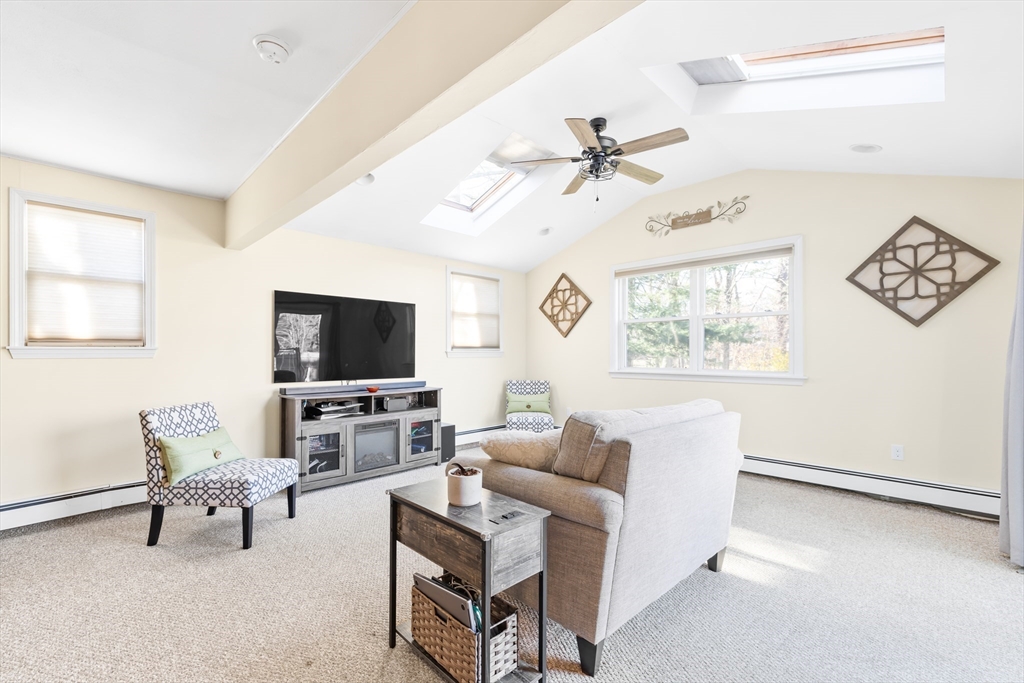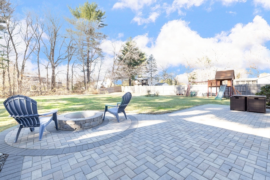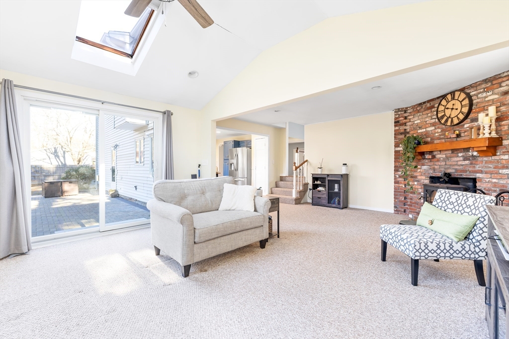 Welcome to this charming 4-bedroom, 2-bath NY Colonial in a popular East Holliston neighborhood. Ideally located near shopping, commuting routes and commuter rail, this MOVE-IN READY home is filled with natural light. A bright foyer opens to a dining room or home office. The lovely sunlit living room features built-in bookcases, and the eat-in kitchen offers a bay window, stainless steel appliances, and pantry. The spacious & cozy family room has vaulted ceilings, skylights, a wood stove, and sliders to a patio with a built-in fire pit—perfect for relaxing or entertaining. A 1st floor laundry room and updated full bath add convenience. Upstairs are 4 generous bedrooms and an updated bath. Outside, enjoy a fenced, level yard ideal for play or gardening. Additional features include an EV charger, one-car garage, and many updates throughout. The quaint town of Holliston offers the Upper Charles Rail Trail & Lake Winthrop. Come see this warm & inviting home. Showings start at the first OH.