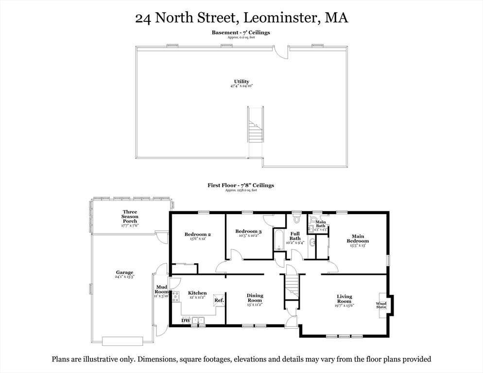 North Leominster Ranch Style Home with 7 Rooms, 3 Bedrooms, 1.5 Baths, 1 Car Attached Garage. Come see this lovely single level home with a fully appliance u-shaped kitchen, formal dining room with hardwood floors, living room with fireplace, hardwoods and mini split for extra heat and a/c. 3 Good size bedrooms, Main bedroom includes 1/2 bath. Full bath with tub and shower, linen closet and tile floor. BIG unfinished walk out basement with heat, full size windows, great opportunity to finish this space for additional living area. LOVE the brand-new roof, adorable front porch, 3 season sunroom with wall of windows and 1 car attached garage. Playful level lot, close to area amenities, highway access and shopping. This is a great place to call home, come see...
