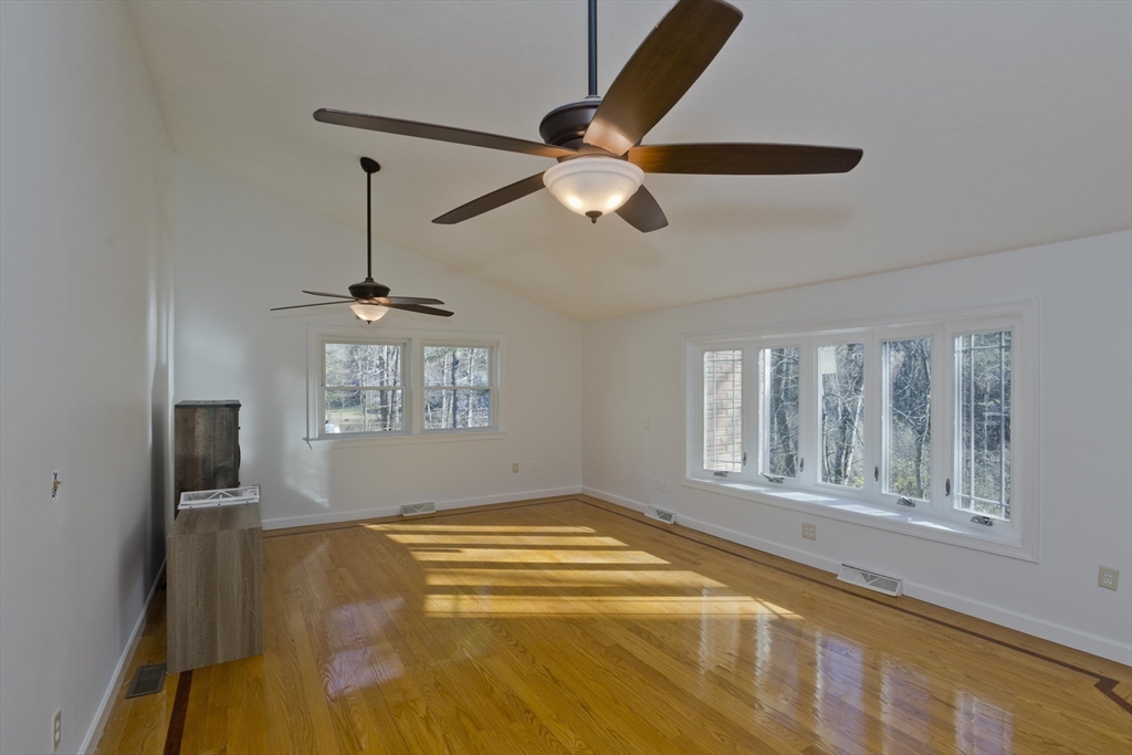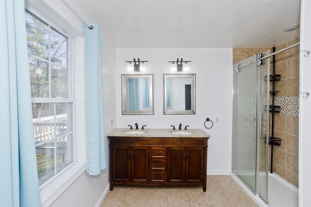 This expansive custom-built home offers an exceptional amount of living space and flexibility. A grand foyer leads to the sprawling main level complete with a skylit living room and oversized family room both featuring vaulted ceilings. Formal dinning area and spacious eat-in kitchen with glazed cabinetry, granite countertops, working island and convection wall oven are perfect for a large family or entertaining. Primary suite features double vanity, low profile tiled shower with glass door and large walk-in closet, while a private bedroom wing includes three additional bedrooms—two with shared access to private full bath. Main level also includes a half bath and laundry room. A beautifully renovated lower-level with separate laundry and access to 2-car garage allow for fifth bedroom or private guest area. Enjoy outdoor living on the elevated deck overlooking a private yard or make use of the additional heated, commercial size multi-vehicle garage bay.