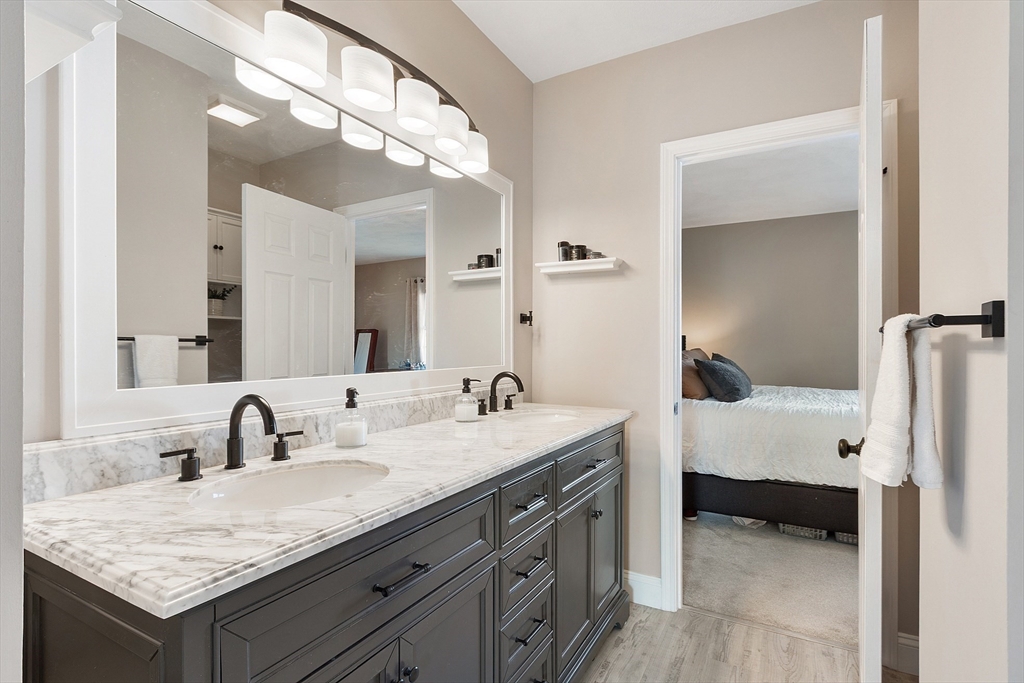 Experience luxury living in this beautifully renovated two-bedroom townhouse in coveted Carter Green. The stunning kitchen showcases custom cabinetry, upgraded granite, a sleek open-concept design & updated plumbing for effortless living. Both bathrooms have been elevated with refined finishes & the entire home has been painted for a truly turnkey experience. A custom stone-surround electric fireplace with built-ins creates an elegant focal point you won’t find elsewhere. The finished lower-level bonus room offers sophisticated flexibility for a home office or additional living space. A lovely mudroom welcomes you from the ground level, the meticulously maintained garage protects your vehicle year-round, and upstairs the pull-down attic access provides valuable extra storage. With premium upgrades throughout including flooring, this townhouse blends comfort, style, and luxury—all you need to do is move in. Showings will begin at the first Open House on Saturday 11/22/25 11am-1pm.