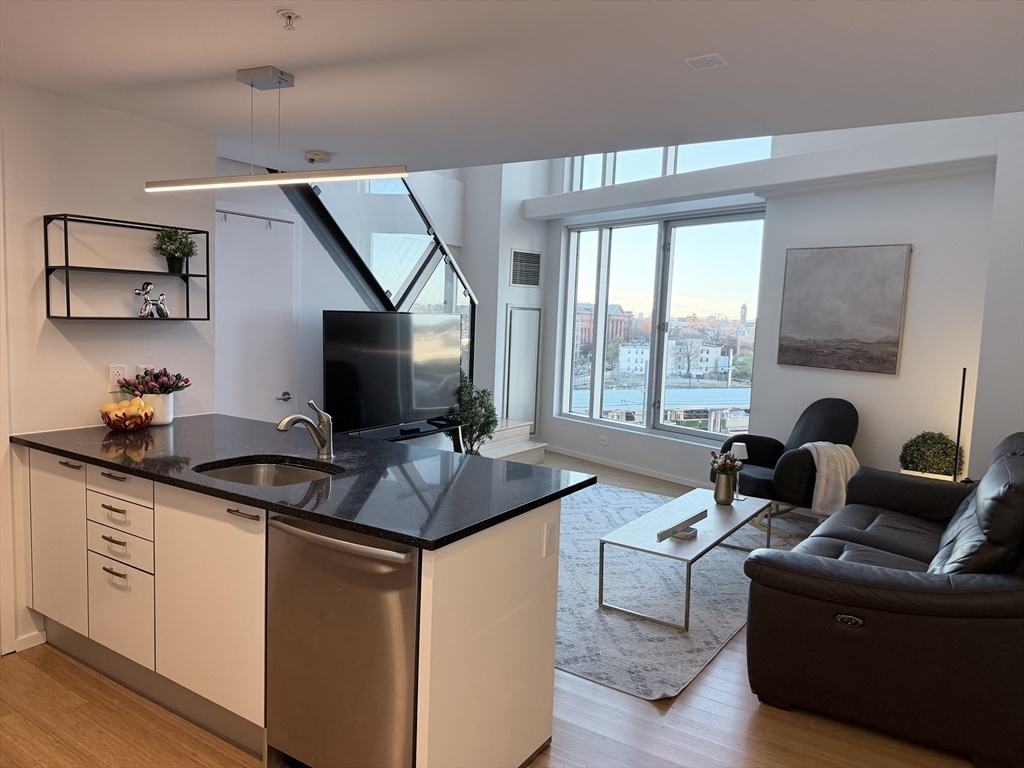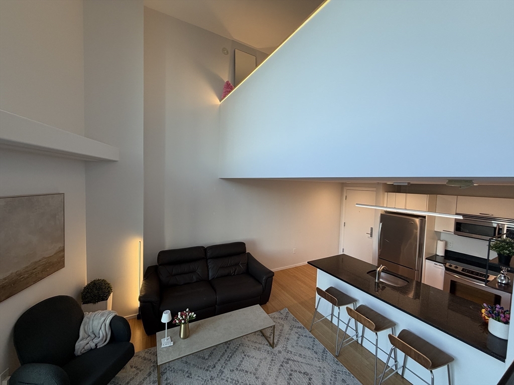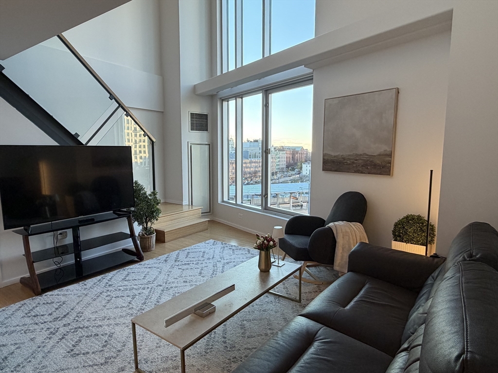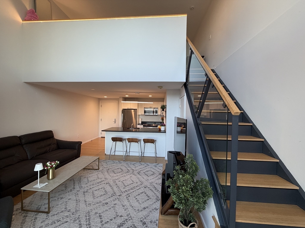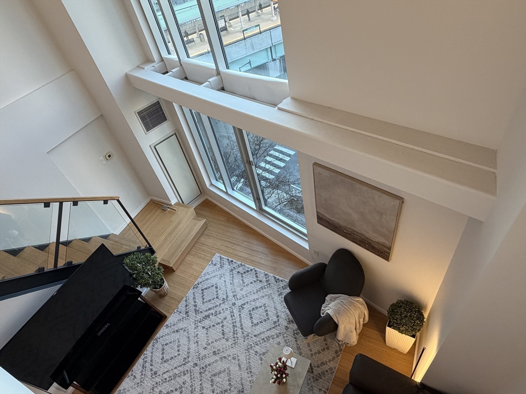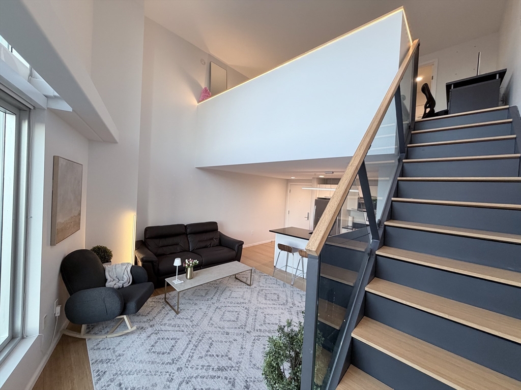 SUNSET PENTHOUSE MODERN LOFT — CX Cambridge Crossing the #1 biotech hub in the United States | Sierra + Tango Condominium. PH 725 is a striking modern penthouse loft duplex defined by its dramatic 17-ft floor-to-ceiling windows that frame sweeping sunset views. The first level features bamboo hardwood flooring, an open-concept kitchen and living area, quartz countertops, stainless steel appliances, updated lighting, electric roller shades, and half bath with additional storage. The upper level offers a spacious, open primary suite complete with a walk-in closet, in-unit laundry and full bath. Complex provides premium amenities including a 24/7 concierge, bike storage, and free EZ bus Ride connecting to Kendall/MIT and North Station. Unbeatable location—minutes to Downtown Boston, Logan Airport, Charles River paths, Cambridgeside Mall, Museum of Science, MGH, restaurants, cafés, Whole Foods, and with the Green Line station right at your doorstep. Offer deadline by 6pm November 24.