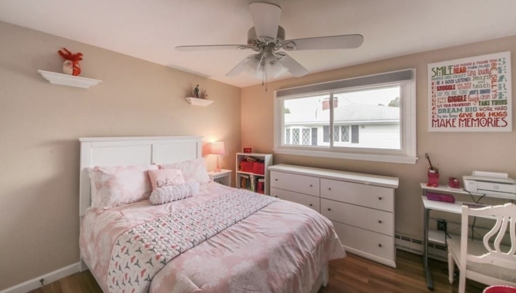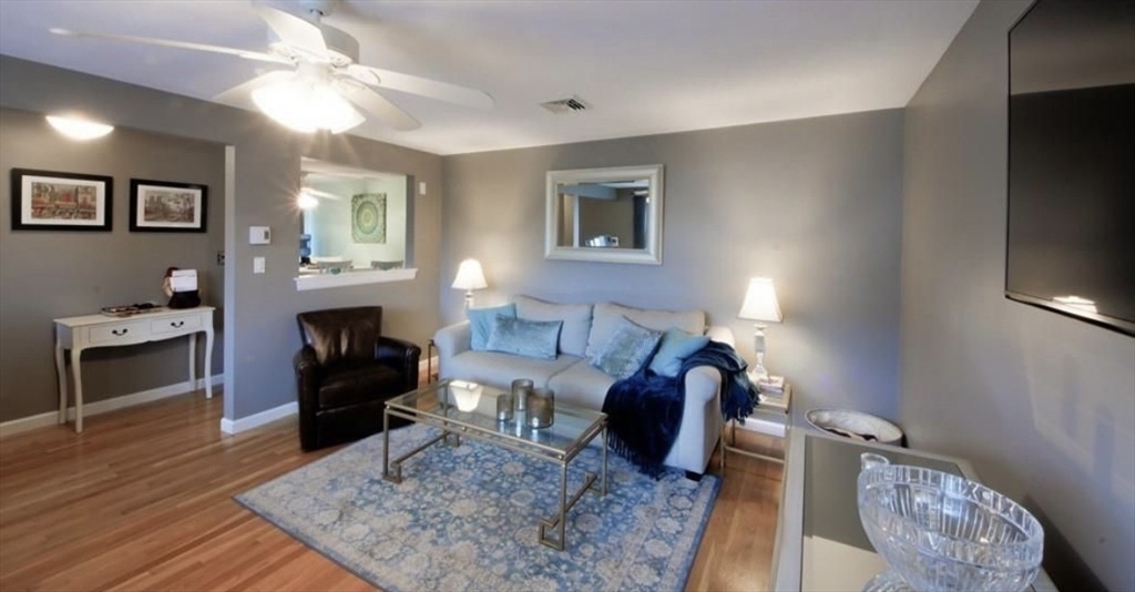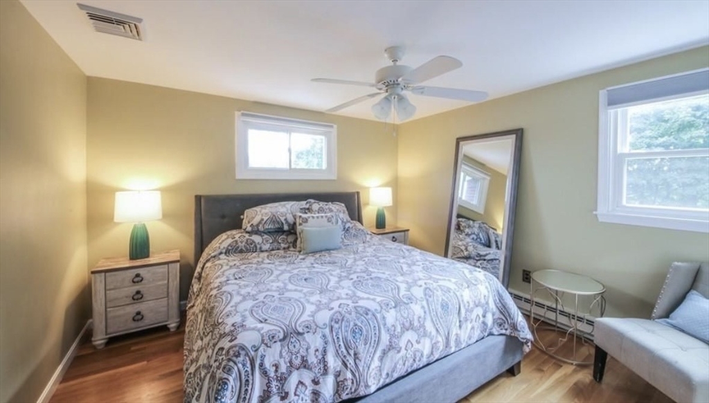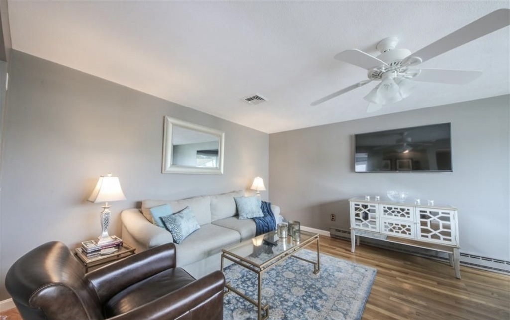 Gracious and Spacious 3 Bed room home . This home boasts hardwood floors throughout, 3 generous-sized bedrooms, bath with an over sized vanity and deep soaking tub. The eat-in kitchen has sliders leading out to the second level deck that has just been updated, convenient for barbecuing right off the kitchen. The large living room has a huge picture window, making it bright and sun-filled for much of the day. The basement has been finished and offers an amazing amount of space with a walk out covered patio. The home has newly finished insulated walls, a gas fireplace, a 3/4 bath, and sliders that lead out to the patio. Outside is a newly fenced-in yard and gardens. This home has had a Mass Save audit and as a result, additional roof insulation and air vents have been added, as well as new thermostats. Central AC has just been added to this great home which is located near commuter rails, hospital,