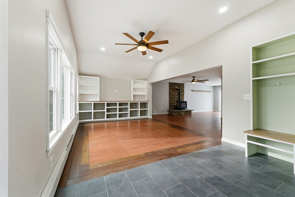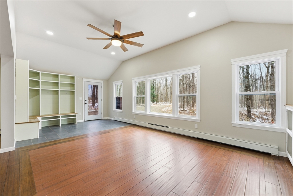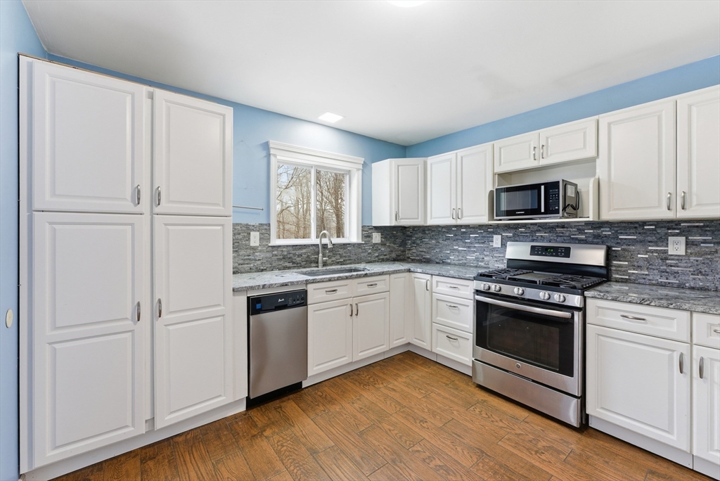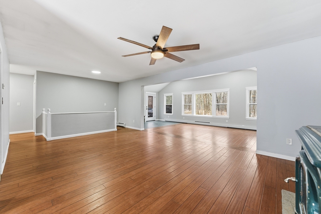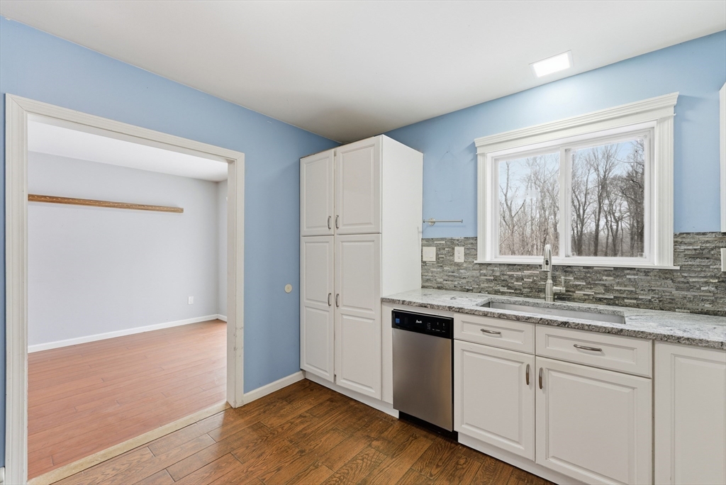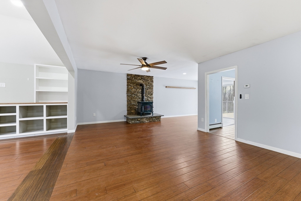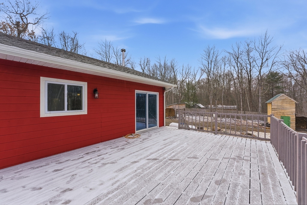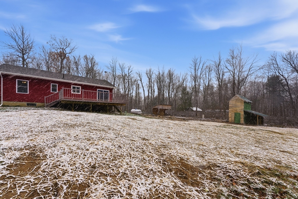 BOM due to Buyer Financing! Nestled on 4.5 Scenic Acres is where you'll find this private retreat, a beautifully updated ranch that's the perfect blend of modern comfort and country living. Thoughtfully updated boasting APO: A brand-new septic system, Architectural Roof in 2023, Newer Gas Boiler about 7-8 yrs old & More! An inviting open design w/vaulted ceilings, recessed lighting, custom built-ins to discover an expansive living rm/family rm w/a cozy wood stove flows seamlessly into the stylish kitchen w/an abundance of chic white cabinets, stainless appliances, propane gas stove & charming dining area. There are 2 generous bedrms w/wood flrs & roomy closets along w/a tiled full bathrm. The finished lower is an added valued flex space makes a perfect home office, guest rm, or rec room. Enjoy outdoor living from the oversized back deck & fenced yard. Not far from Westfield or Pittsfield offering convenience w/all the natural beauty the Berkshire foothills has to offer.