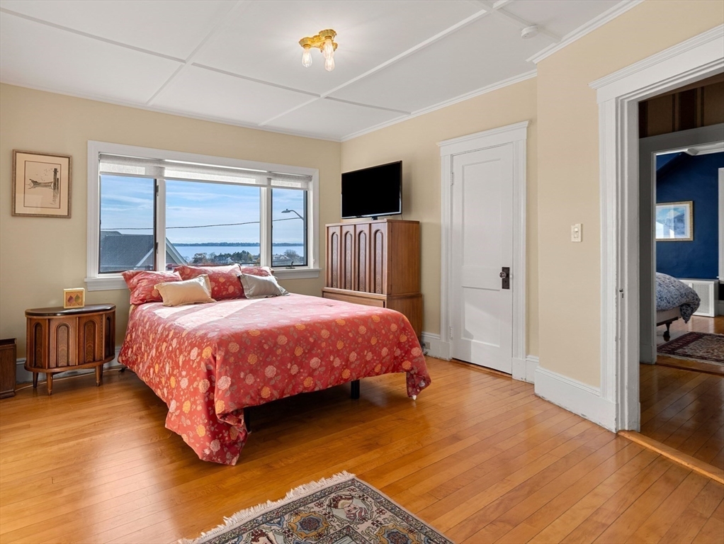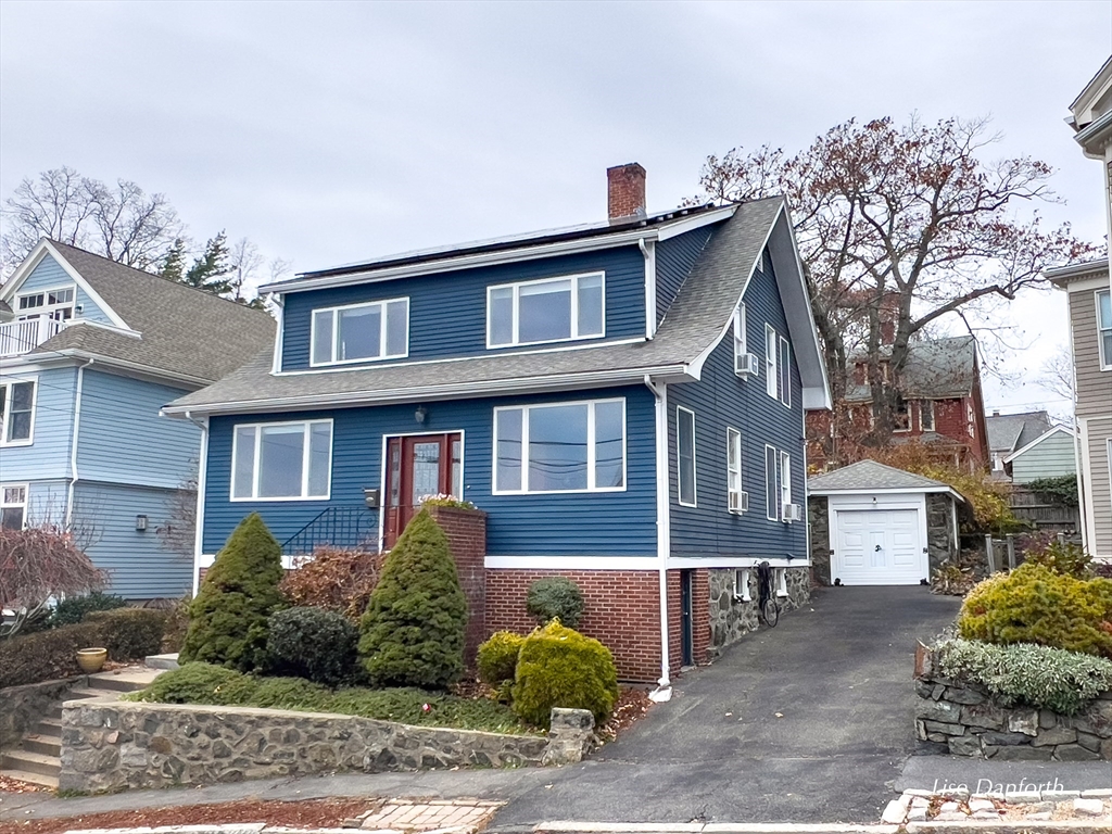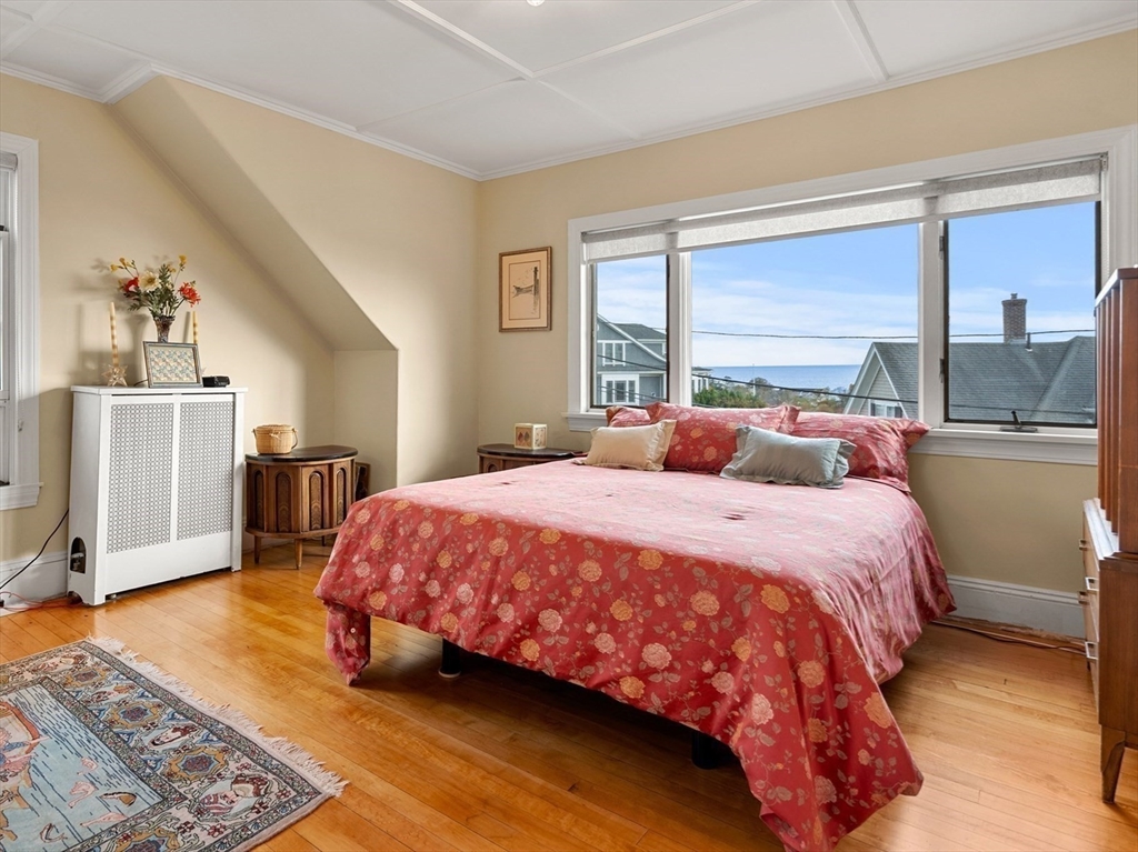 Perched on a hill overlooking Swampscott Harbor, the Atlantic Ocean, and the Boston skyline, 8 Ocean View Road offers classic New England charm with beautiful water views. This 1930s Colonial features 3 bedrooms and 2.5 baths, including a serene primary suite. The first floor boasts a living room and family room with fireplace both with ocean vistas—plus a formal dining room and kitchen with large island, both with access to a three-tiered deck, ideal for grilling and entertaining. Hardwood floors and period details evoke timeless elegance throughout. Additional features include a one-car garage with tandem parking for three more vehicles, solar panels for energy efficiency, and oil heat. Combining character, comfort, and captivating scenery, this coastal gem embodies the best of Swampscott seaside living. Showings start Saturday 11/15/25 at the open house 12-1:30.
