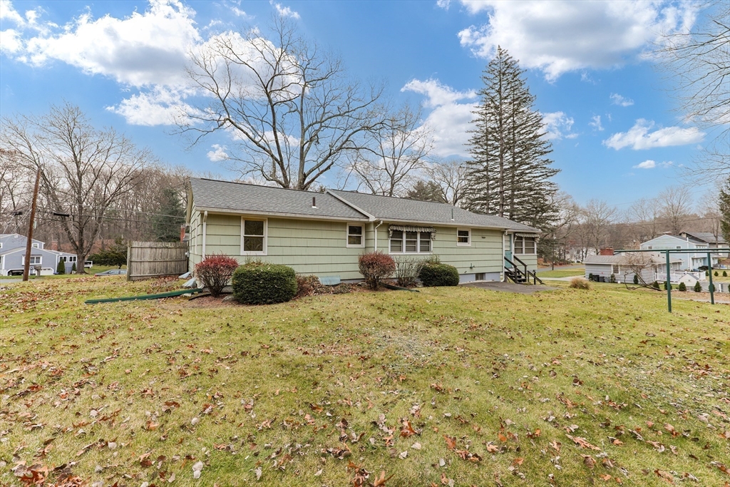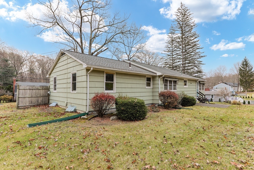 Opportunity Knocks! Neighborhood location for this Ranch style home set on a .44 acre yard. The main level features a front hall entry spacious livingroom with hardwood floor, fireplace, dining room with triple windows letting in the afternoon sun. The kitchen has a pantry closet and a slider out to a 3 season porch. Three bedrooms with hardwood floors, overhead lighting and good size closets. One full bath. The basement is unfinished with a laundry area, work bench and access to the one car garage. The home is ready for your updates and personal touches! Large yard set up on this popular country road. So many possibilities. The location is close to the town center, reservoir, shopping and access to major routes.