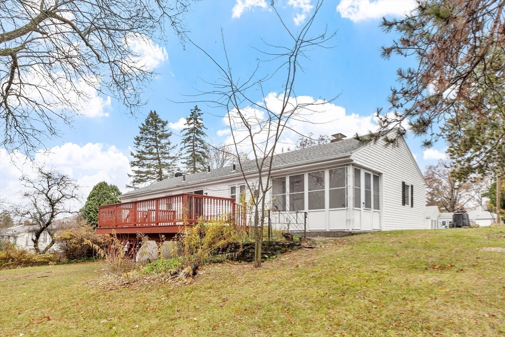 Welcome Home to this fantastic Burncoat neighborhood! Attractively situated on a corner lot, this home has been well-maintained. Enter the kitchen through an enclosed patio~perfect for nice weather relaxing! Then, through the nicely sized kitchen is the dining room, with a slider leading onto a stately 14x24 deck overlooking the shaded, private yard~great for entertaining or dining out in nice weather. This home boasts newer windows, updated electric, and a young Buderus boiler. Gorgeous fireplaced living room, for relaxing or chatting with friends, and beautiful hardwoods throughout. Fantastic corner lot in a quiet neighborhood; yet great location with easy access to MA Pike, 290, and 190. Finished lower level has great potential for additional living area. Come & fall in love with this beauty and you can be Home for the Holidays!!