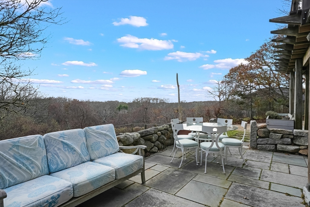 Perched on 2.7 acres in one of Aquinnah’s most stunning settings, this coastal retreat captures sweeping views over the Atlantic and Noman’s Land. The main level offers an open living/dining/kitchen wrapped in windows and opening to a wraparound mahogany deck—ideal for sunrise coffee and sunset dinners. A Viking-equipped kitchen and a spacious ocean-facing primary suite complete this floor. The lower level includes two bedrooms, a large flex room with walkout stone patio, plus a full bath, laundry, and storage. Beautiful grounds feature custom stonework, garden beds, and multiple outdoor seating areas. A two-level workshop/studio with plumbing, electricity, and a wood stove offers excellent potential, including a future ADU with permitting. Directly across the street, the new Squibnocket Pond Reservation provides trail access to a pristine shoreline. Move-in-ready, private, and perfectly sited—this is Aquinnah at its best.