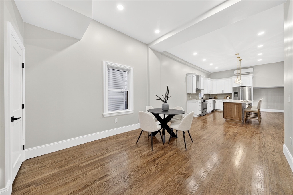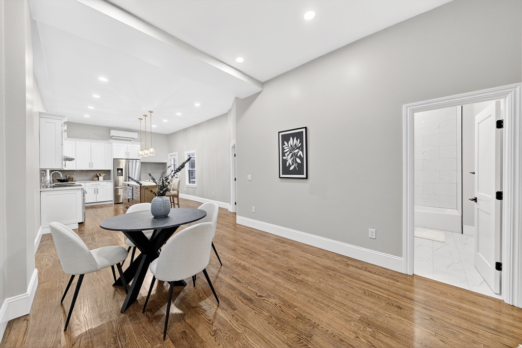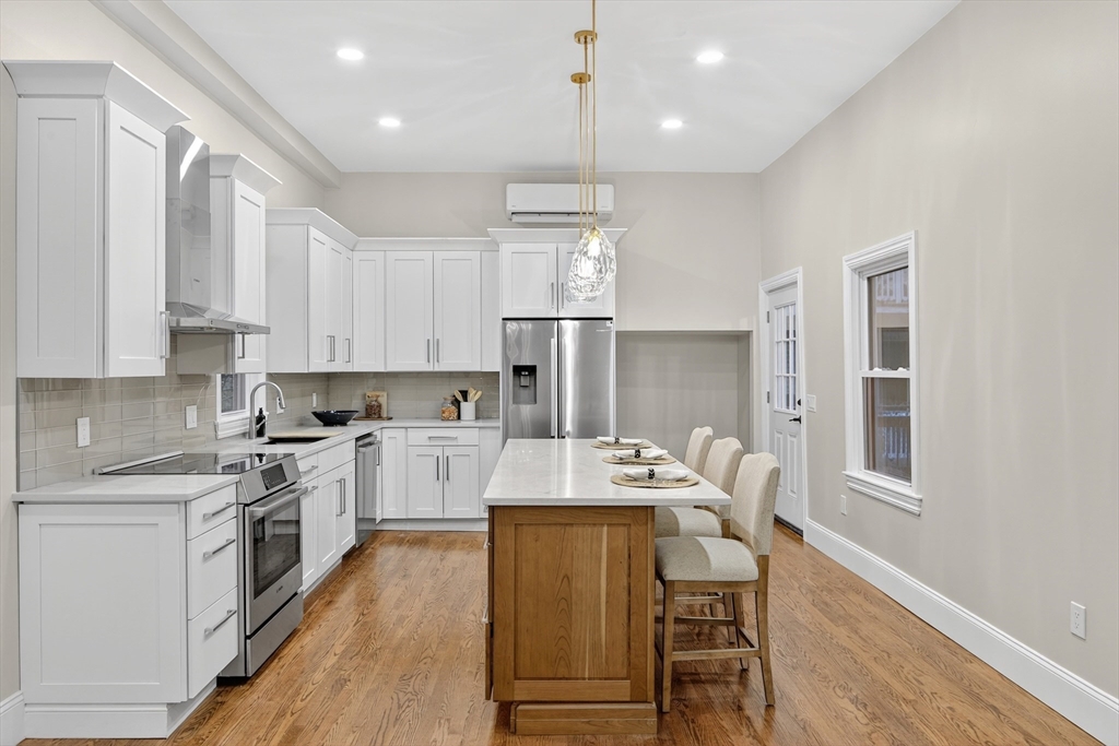 5 streets from the bridge and minutes from JFK/UMass and the Savin Hill Red Line. This brand new fully renovated 4BD 3 BTH single-family lives like new construction. Set on a quiet, tree-lined one-way street with a fenced and landscaped yard. You are welcomed by a foyer leading to an open kitchen and dining area with 10-foot ceilings, induction range, Bosch appliances, quartz counters, and custom cabinetry. A first-floor bedroom/office, full bath, deck access, basement access, and a separate living room with bay windows complete the main level. The 2nd floor offers 3 bedrooms, 2 full baths (two en suite), laundry, and custom closets including a walk-in in the primary. Features include all-new roof, windows, systems, siding, Kohler fixtures, plus a HERS-rated energy-efficient design. 2 car parking and a 800+sqft partially finished basement ideal for future living space, an ADU or storage. Enjoy a suburban feel in the city, close to restaurants, beaches, highway access, shopping and more