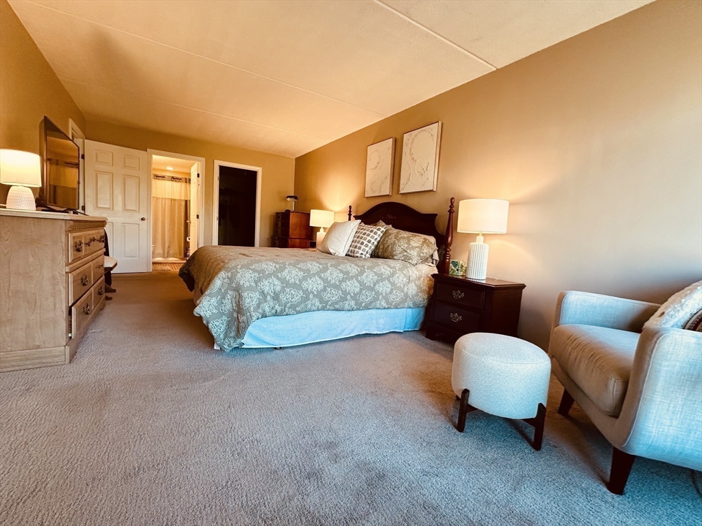 Welcome home to this light-filled, top-floor corner retreat in the highly coveted, pet-friendly Montvale! Offering 1,061 sq ft of smartly designed space, this inviting home boasts expansive windows providing abundant natural light and tranquil views. The spacious primary suite includes a generous walk-in closet and sitting area overlooking the beautifully maintained inground pool. The 2nd bedroom is equally bright and versatile, and 2 full baths provide exceptional convenience and privacy. Additional amenities include 2 DEEDED GARAGE spaces, in-unit laundry with full size, side-by-side washer & dryer, and private storage plus trash/recycling room on same floor. Condo fee covers hot water and large part of heat & AC. This commuter’s dream is just 0.3 miles from Rt. 93 while maintaining the peaceful feel of a residential setting. Refrigerator, microwave, washer & dryer remain as gifts to buyer. Make this move-in ready home combining comfort, easy living, location, and style yours today!