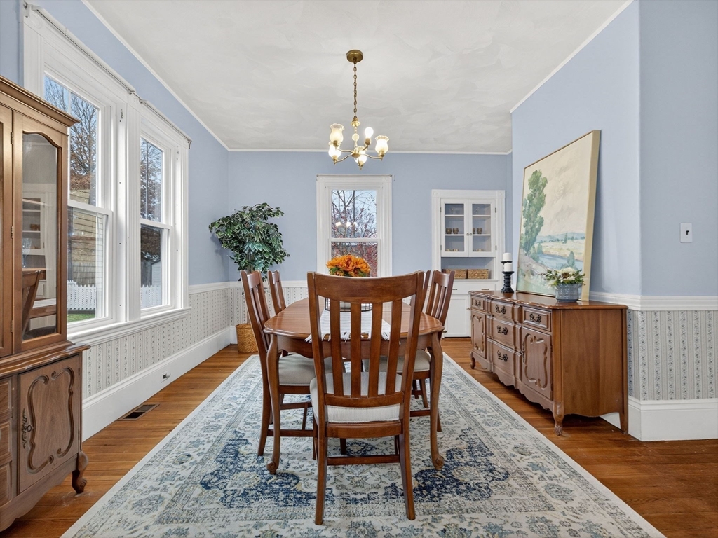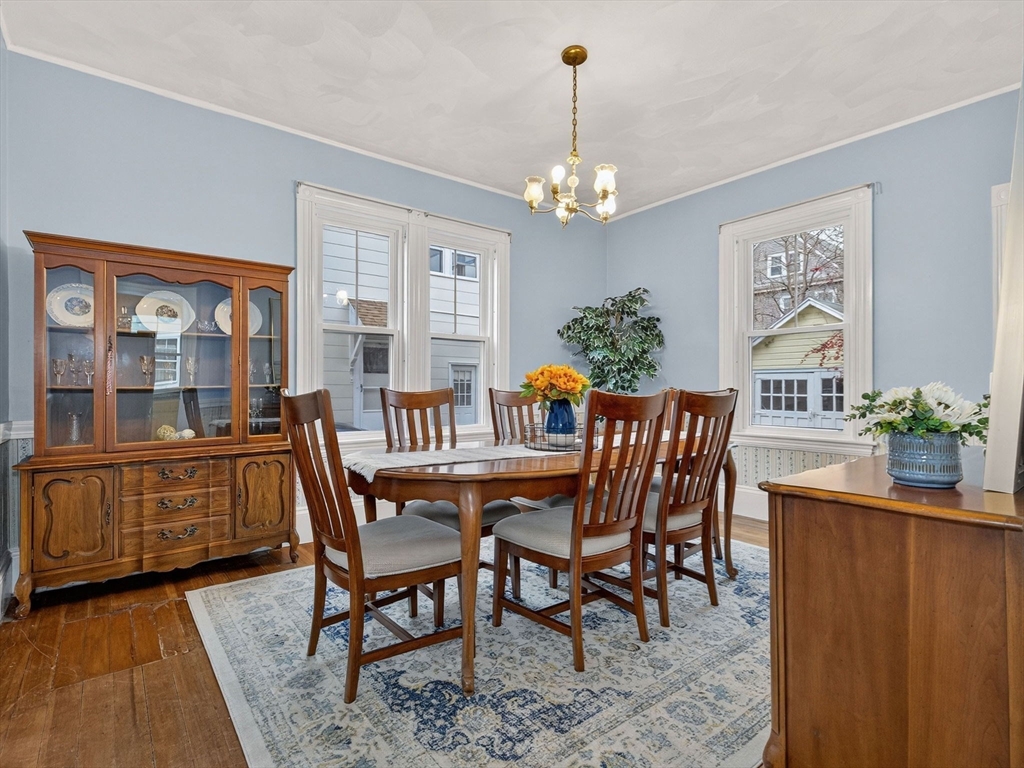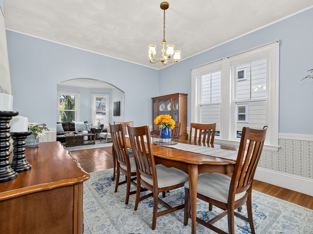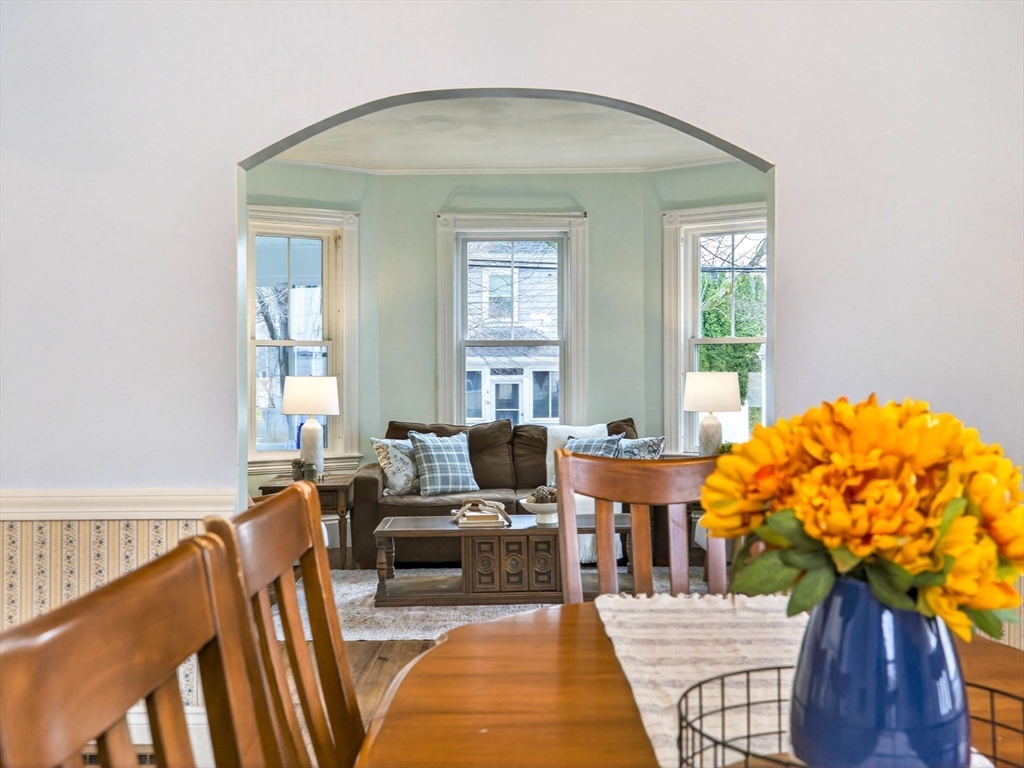 Nestled at 33 Capitol Street, this well-maintained Colonial blends historic charm with modern function, offering 4 bedrooms, 1.5 baths, and over 2,000 sq ft of living space. The first floor includes a gas-equipped kitchen, dining and living rooms, a half bath, and a versatile mudroom for storage or pantry use. The second floor offers three bedrooms and a full bath, with an additional bedroom and a large storage area on the third floor. Gas heat by forced hot air, circuit breakers, and a recent hot water heater. Outside, the property features an unusually spacious yard for Watertown with mature trees, a garage suitable for parking or storage, and off-street parking for up to four cars. Convenient access to major routes, including the Mass Pike and the Newton line.