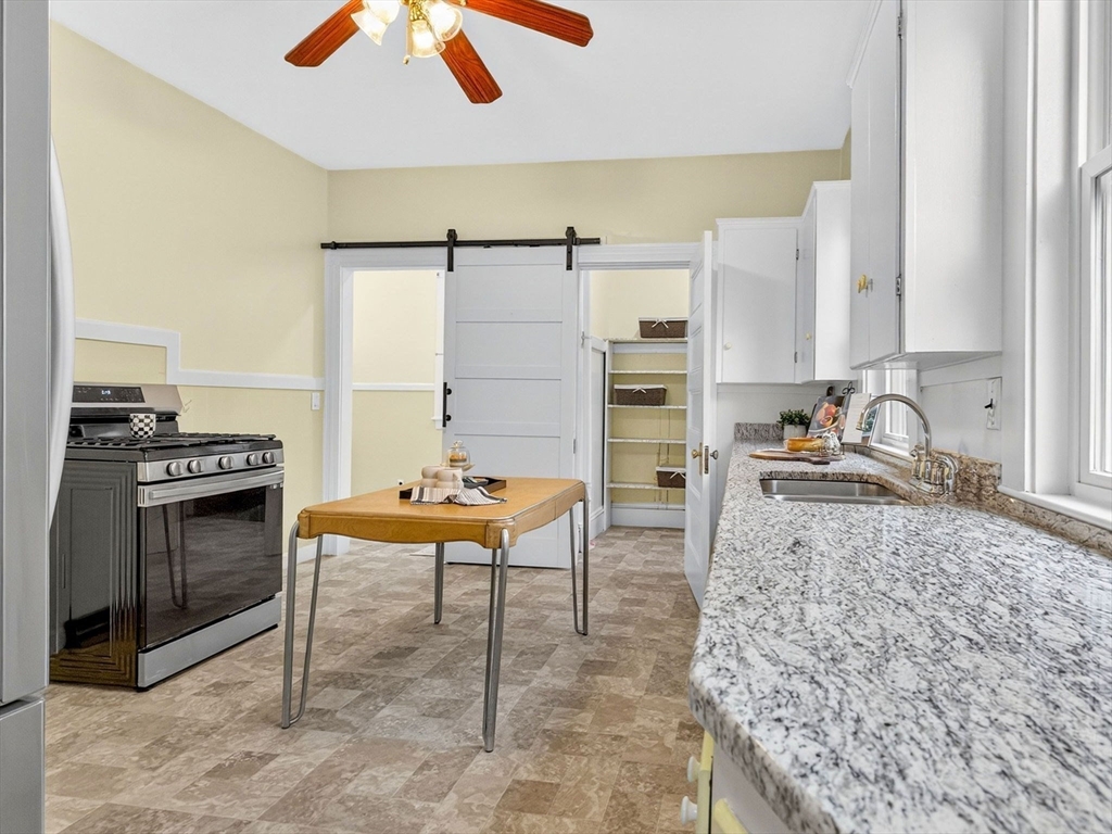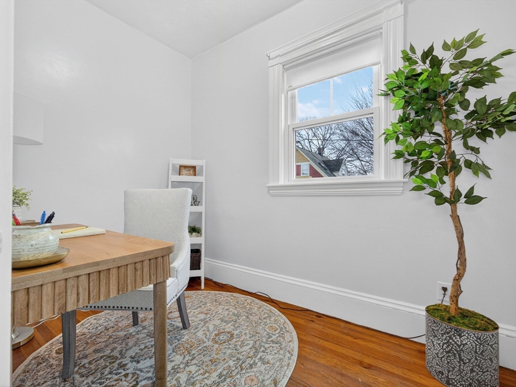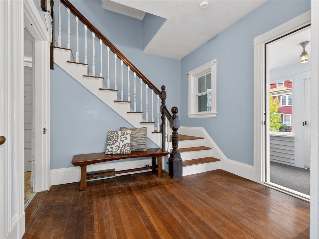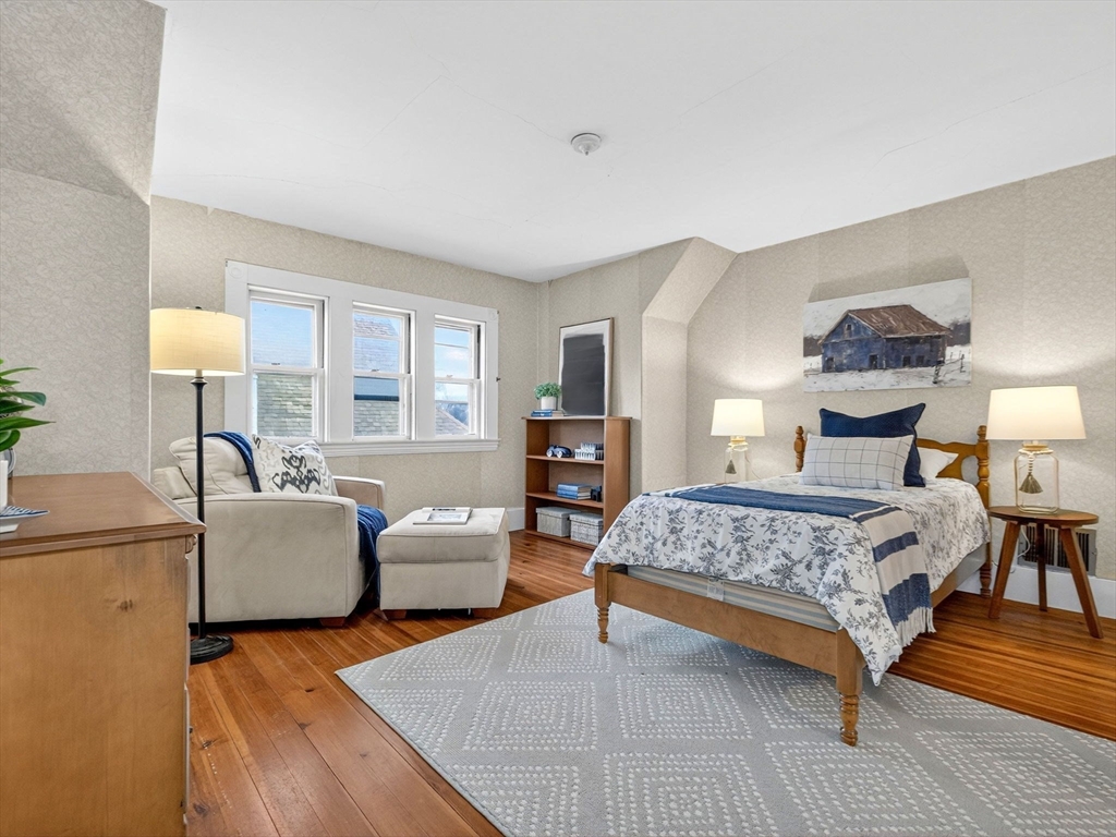 Nestled at 33 Capitol Street, this well-maintained Colonial blends historic charm with modern function, offering 4 bedrooms, 1.5 baths, and over 2,000 sq ft of living space. The first floor includes a gas-equipped kitchen, dining and living rooms, a half bath, and a versatile mudroom for storage or pantry use. The second floor offers three bedrooms and a full bath, with an additional bedroom and a large storage area on the third floor. Gas heat by forced hot air, circuit breakers, and a recent hot water heater. Outside, the property features an unusually spacious yard for Watertown with mature trees, a garage suitable for parking or storage, and off-street parking for up to four cars. Convenient access to major routes, including the Mass Pike and the Newton line.