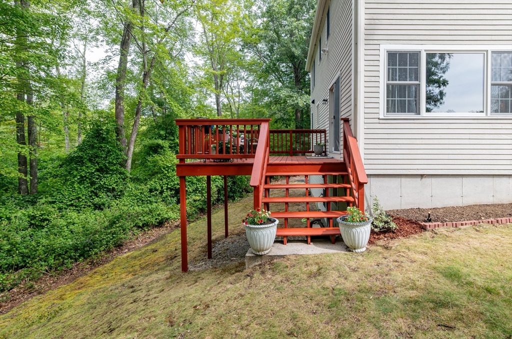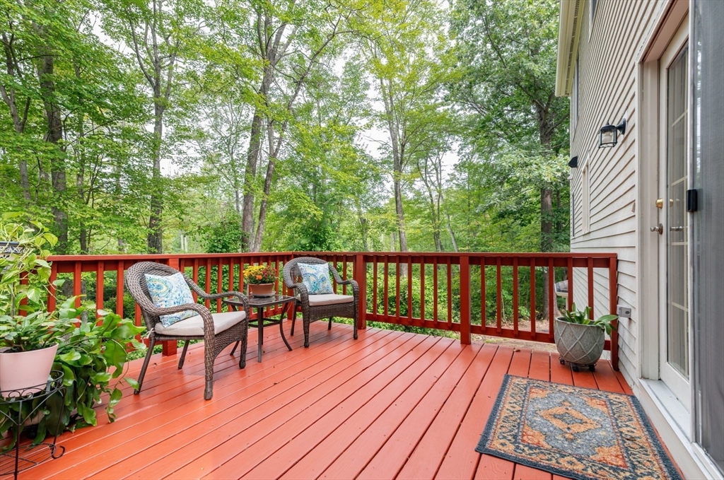 Desirable Holly Estates Location! This Colonial delivers low-maintenance living with modern comfort. The heart of the home is a new chef's kitchen with quartz countertops, crisp cabinets, and island opening to a fireplaced living room and a welcoming deck overlooking protected woods—perfect for entertaining. Spacious primary suite features a full bath and two walk-in closets. Finished walk-out lower level creates a bright work-from-home office or media room with direct outdoor access and the massive two car garage with storage. Two additional bedrooms offer quiet comfort with a spacious common bath. The conservation land provides a densely wooded buffer for privacy, seasonal views, and wildlife watching without yard maintenance. This rare property offers a lifestyle of peace and wellness for buyers prioritizing privacy, premium neighborhood, and tranquility. Minutes to Columbian Square, South Shore Hospital, and the commuter rail! Open House Saturday & Sunday 12-2PM!