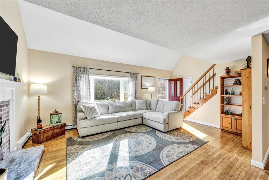 Welcome to your dream home in Southfield Estates! This charming Cape-style residence boasts a spacious open floor plan, highlighted by a large living room featuring a cozy wood-burning fireplace. The great kitchen is equipped with stainless steel appliances and a convenient breakfast bar, perfect for casual dining. A separate sunroom adds to the appeal, providing additional space to unwind. The first floor also includes a versatile large room that can serve as a first-floor bedroom. Laundry facilities are conveniently located on the first floor. Upstairs, you will find three generously sized bedrooms and a full bath, complete with a balcony overlooking the living room, adding a touch of elegance to the home. Recent updates include AC, gas heating system, a tankless water heater, electrical panel, recessed lighting and much more. The fenced yard ensures privacy, and with a one-car garage, this home is truly move-in ready. Don't miss the opportunity to make it yours today!
