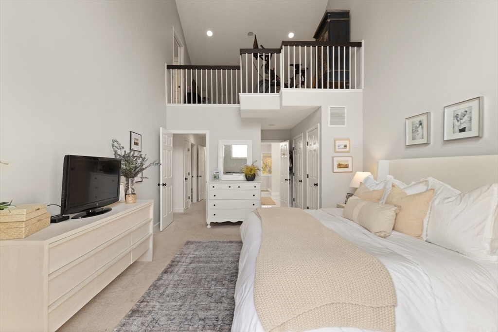Beautiful and light-filled 3-story townhouse offering nearly 3,700 sq.ft. in a premier location across from scenic Patton Park and in the heart of Hamilton’s downtown near the MBTA station, restaurants, shops, and top-rated H-W schools. Designed for comfort and entertaining, this home features a sleek white shaker kitchen with quartz countertops, stainless steel appliances, and ample cabinetry. The large living room showcases a wood-burning stone fireplace and cathedral ceiling opening to a sun-filled solarium overlooking manicured grounds. A cozy sitting room, powder room, and formal dining area complete the main level. Upstairs, the primary suite offers soaring ceilings, a beautifully updated en-suite bathroom, and private balcony. Two additional generously sized bedrooms share a renovated bath, while a versatile bonus room and loft occupy the third floor. Enjoy central A/C, hardwood floors, an attached two-car garage, and a private patio for outdoor relaxation.