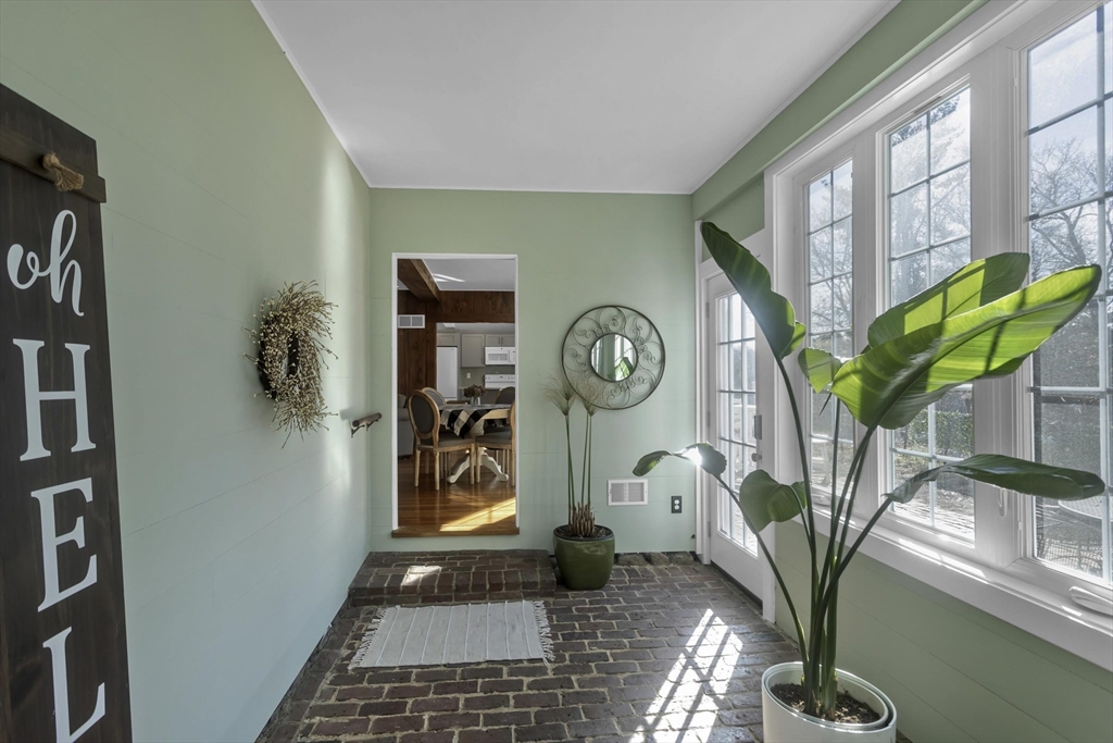 Home in time for a Hallmark Holiday! This 3 bed 2.5 bath Charming Cape on coveted Fiske Hill Rd is straight out of a storybook, extensively Remodeled in 2023 while preserving its classic New England character. As you enter the generously-sized Mudroom you're immediately pulled in to a large and warm living room by exposed beams, gleaming hardwood floors, a beautiful fireplace and rustic feature wall. This flows into a completely updated bright & clean kitchen and a dining space with plenty of room to gather. A flexible first-floor bedroom or office adds convenience, while two spacious upstairs bedrooms and tastefully updated baths—including a private primary suite—provide comfort and style. Also on the second floor, you'll find a laundry room equipped with washer & dryer and an office/study space. The light-filled sunroom is the perfect place to relax, with calming color tones and a reclaimed brick floor holding rich history that carries out to the back patio on your quiet 1.19 acres.