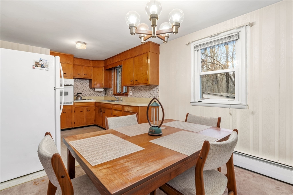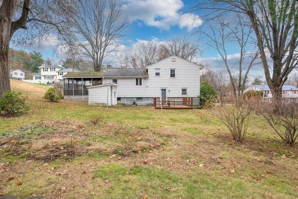 In a prime Burlington location near the mall, Lifetime Fitness, dining, shopping, and with effortless access to Routes 2 and 95, this well-maintained 3-bedroom, 1-bath multi-level home offers exceptional potential. Lovingly cared for by its original owner, the property features replacement windows, hardwood flooring beneath existing carpets, a spacious fireplaced living room, and a full kitchen with an adjoining dining area. The standout feature is the remarkable, private lot—surrounded by nature and directly abutting walking trails. Additional highlights include an attached one-car garage, a generous screened-in porch, and an inviting back deck, creating an ideal setting for outdoor enjoyment and future customization.