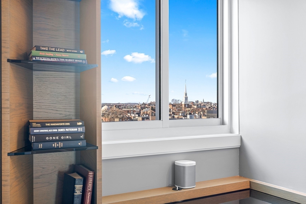 Impressive designer residence on the Waterfront features Harbor and City views, Private balcony, and Garage Parking. Custom crafted kitchen and wet bar with high-end appliances, cabinetry, and countertops. Sunken living room with 12 foot ceilings, unobstructed mouth-of-the-harbor views from floor-to-ceiling sliders, walk-out balcony, and fireplace. Master bedroom with city views, walk-in closet, custom lighting and built-ins. Bathrooms offer walk-in showers, custom tile work and hardware, heated floors, and fine lighting. Guest bedroom with city views, convertible sofa, and built-in office. Central air, built-in audio, washer/dryer, and extra storage. Originally the Prince Pasta factory, The Prince Condominiums offers professional management, garage parking, and a common roof deck. An iconic location, next to the North End, Greenway, Seaport District, Faneuil Hall, Downtown Boston, North and South Station, and all major transportation points.