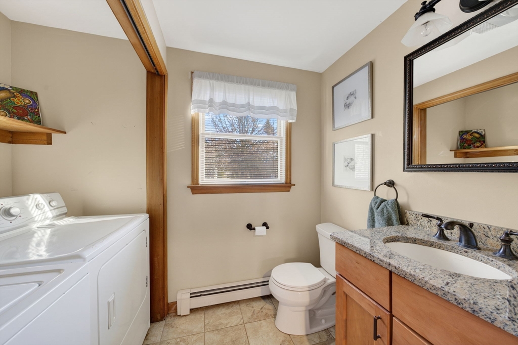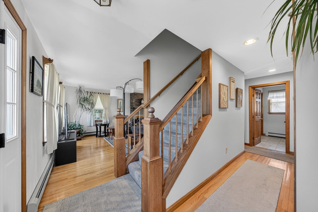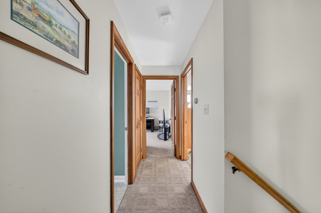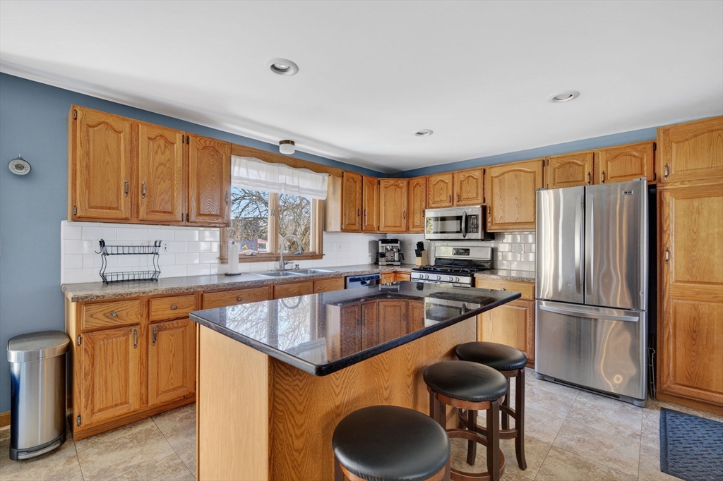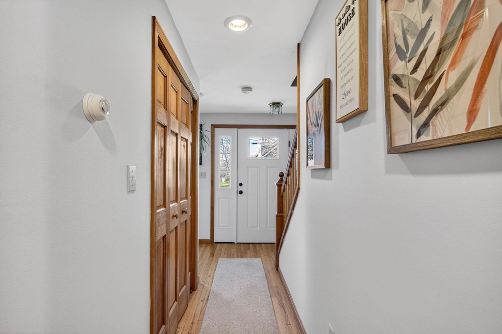 Welcome home to this well cared for 3-bedroom with bonus room and 1.5 baths in a cul-de-sac neighborhood. This well-cared-for property sits on a spacious lot enhanced with cherry trees, blueberry bushes, and garden area. Outdoor living is easy with a large fenced in yard, deck, patio, and newer shed. Inside, you’ll find a large living room with a recently serviced wood-burning fireplace, kitchen with newer appliances, bonus room for formal dining room, office & more, as well as the convenience of 1st floor laundry & a full bath. The second floor offers 3 bedrooms, a 2nd bathroom, including a nicely sized primary bedroom with 2 closets. Additional features include a dry basement with pellet stove, sump pump, and generator hookup. The attached 2-car garage provides direct access to the backyard and includes loft space above for excellent additional storage. A new front door and steps (2024) and a 2-year-old hot water tank. Open house Saturday & Sunday 10:30am-12 noon.