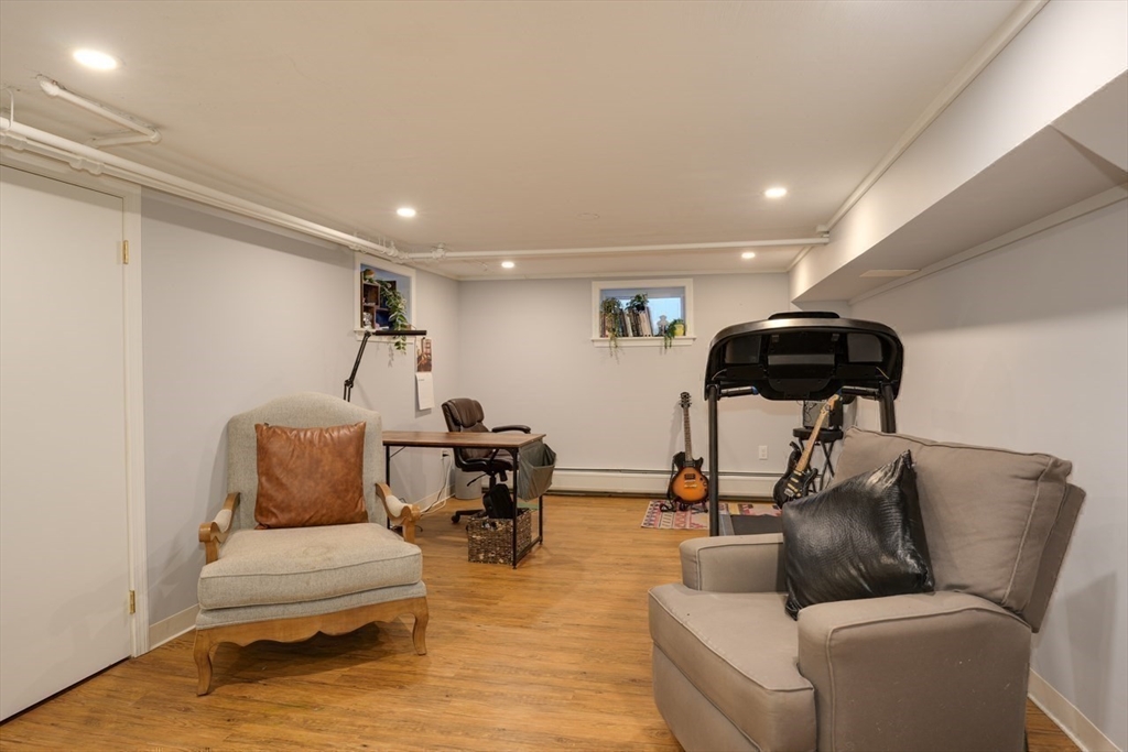Located so close to Belmont Center with fresh updates, this first floor garden level 2 bedroom plus office unit offers convenience of condo living with the feel of a single. Spacious living room with gas fireplace features pretty arched doorframes to the dining room with corner hutch and updated kitchen with stainless steel appliances, granite countertops, and gas range. Well-proportioned bedrooms, gleaming wood floors throughout, and lots of closet space. Bonus areas in the basement with a huge finished room perfect to use as an office, gym or family room with extra closets, a private storage locker, and laundry. Freshly painted in today’s neutral hues, this home checks all the boxes: central air conditioning, outdoor patios, certificate of full deleading compliance, even the white picket fence! Close proximity to Belmont's new Middle & High School, Library, Ice Rink, Fresh Pond Cambridge, Bike Path, the commuter rail, and Center amenities. Welcome home!
