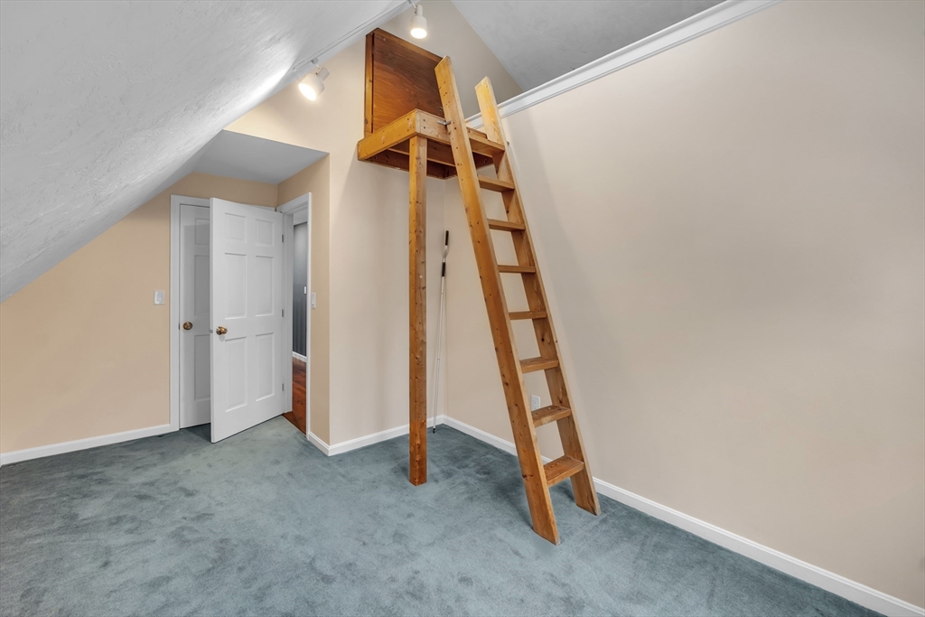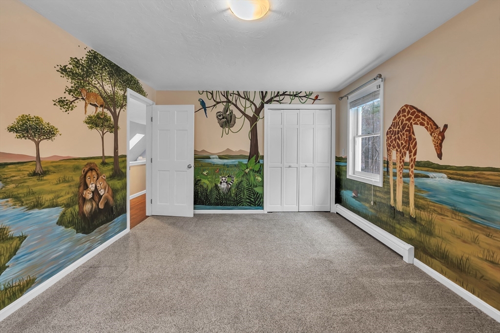 With over 2000 sq. ft. of living space, this 3-bedroom, 2.5-bath property features many recent updates including new interior and exterior paint, remodeled kitchen and baths, boiler, hot water tank, and roof. The bright layout on the main floor includes a cathedral-ceiling family room with a cozy fireplace, a large eat-in kitchen with breakfast bar, an additional dining room area, a formal living room and half bath with laundry. Upstairs are three bedrooms, including one with a stunning African mural and another with a fun loft perfect for kids bonus play space. The basement has a 2 car garage and a finished playroom/office. Outside there is a private yard with an irrigation system, deck and patio area for grilling and entertaining as well as a large swingset for hours of fun. Enjoy a flat, cul de sac road ideal for walking or biking and convenient access to the highway, town center, Sterling town beach, the rail trail and nearby Wachusett Mountain for hiking and skiing enthusiasts.
