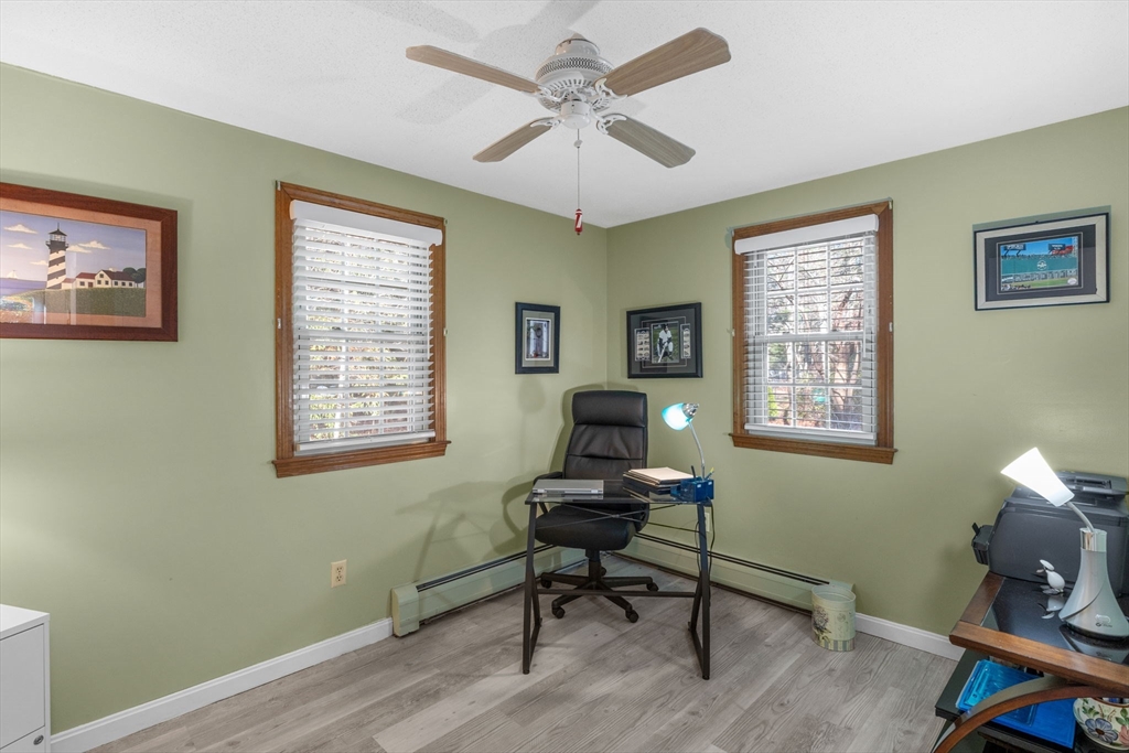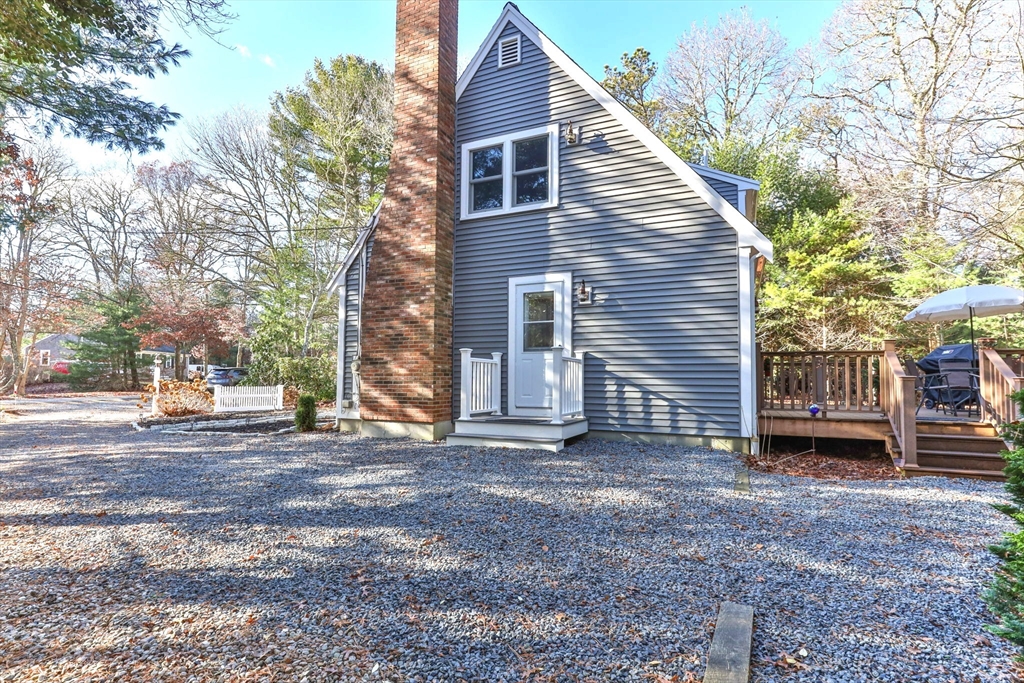 This charming updated cape is nestled on a wooded, spacious lot in a quiet Centerville neighborhood. Step in the side door to find a sparkling brand new kitchen with white shaker style cabinets, stainless appliances, quartz counters, a stylish island and beautiful wood floors. Sliding doors lead to the large deck for grilling and outdoor fun. There is a fireplace and wood floors in the bright living room, with 2 bedrooms and a full bath to complete the first level. Upstairs is the primary bedroom with beamed ceiling, generous closets, newer windows and easy care laminate flooring. Another bedroom and full bath round out the second level. The exterior features newer vinyl siding, new entry doors and 2 Trex porches, lots of parking spaces and nice plantings for pretty spring/summer color. The basement has a laundry area, convenient workbench and lots of storage space. Ideally situated close to beaches, shopping, highways and more. This inviting home could be your Cape Cod retreat!