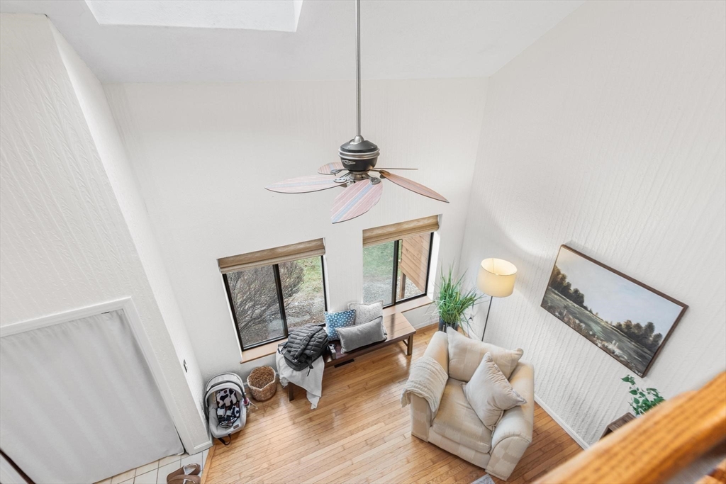 WELCOME to the BEST of BOTH WORLDS! This SPACIOUS 3 level, 2 bath, 2 bed END UNIT offers the feel of a single family w/o the maintenance! Enter into a SUN SPLASHED LIVING RM featuring OVERSIZED WINDOWS, a cozy FP & SOARING ceilings that SEAMLESSLY FLOW into the DINING RM making the IDEAL SPACE for ENTERTAINING. An updated kitchen shines w/REFINISHED CABINETS & NEW SS APPLIANCES. The convenient 1st floor bdrm has NEW FLOORING & a dbl closet. Upstairs the 2nd spacious bdrm has new flooring, dbl closet & an additional EXPANSIVE WALK IN closet large enough to double as a nursery! The VERSATILE LOFT overlooking the LR offers ENDLESS POSSIBILITIES, office, playroom, den? A full bath w/shower completes this level. Need MORE SPACE? The FINISHED LL w/a bar provides the perfect settting for watching the big game or a hangout for the kids WITH a DEDICATED exercise area. Enjoy access to PRIVATE TRAILS for leisurly walks. When LOCATION, SPACE & VALUE come together, the CHOICE is EASY!