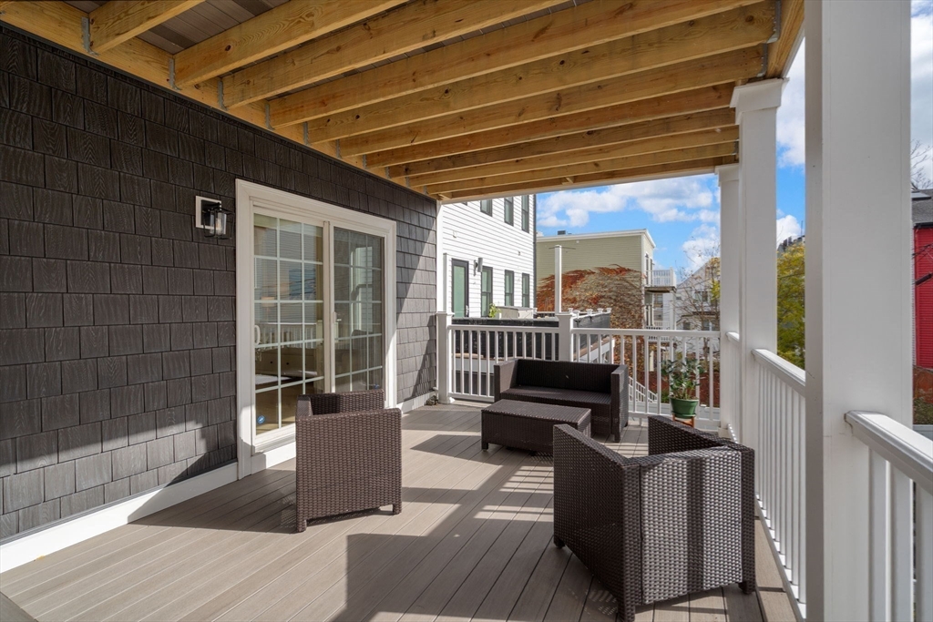 New Listing! Fabulous Jeffries Point. Spectacular 2nd floor home with amazing layout. Nearly 1400sf--all on one floor. 3 bedrooms + 2 full baths. Inviting + Large--Front facing Living room with tall ceilings/windows + hardwood floors. Beautiful Open plan Living/Dining/Kitchen--Perfect for entertaining. From the Private deck, enjoy morning coffee, dining al fresco or just relaxing. Shared Yard. Sleek kitchen with granite breakfast bar, stainless steel appliances with gas cooking + plenty of prep surfaces/cabinetry. Primary bedroom with walk in closet, en suite bath with double sinks, granite vanity + tub. 2nd full bath with granite vanity and tub. Direct access to the Private Deck from 2 of the bedrooms. 5 closets throughout including 2 walk in closets + Private huge storage in basement. Central AC. In unit Washer/Dryer. Built ground up new, 2010. Live in the wonderful Jefferies Point neighborhood near restaurants, shops, Piers Park, the Harborwalk, Maverick Station + more.