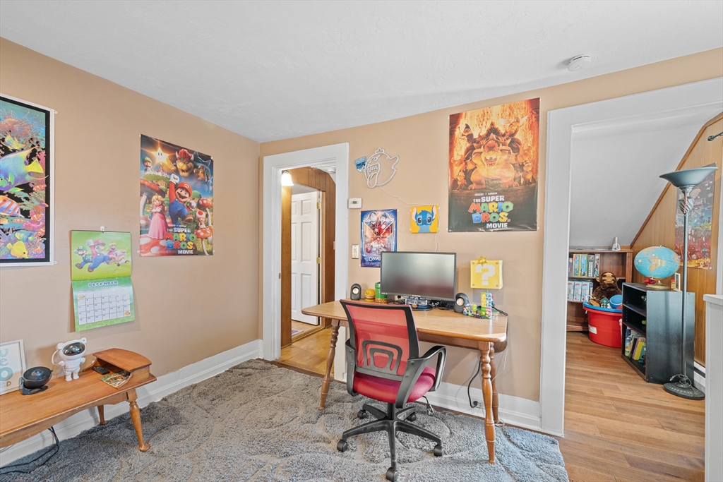Well-maintained 3-bedroom, 1-bath Cape with a detached garage, hardwood floors throughout, a beautifully beamed living room, an upgraded kitchen with a tongue-and-groove beamed ceiling, and a light-filled sunroom off the large deck overlooking the side yard, providing an ideal space for relaxing or entertaining. The versatile layout includes one bedroom on the main level and two upstairs, with large closets and recessed lighting. Recent updates include 200-amp electrical service, ductless mini-splits providing both heating and cooling (with the oil system retained for backup), and a hot water heater approximately 2 years old. This home offers warmth, charm, and comfort and is ready for its new owners!