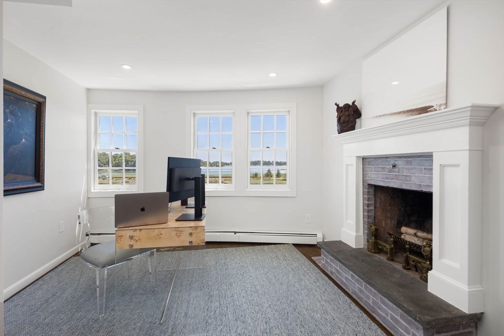 Stunning Little Harbor waterfront home with panoramic views from every room. Fully renovated, this custom Nantucket shingle-style home offers an open floor plan that flows to exceptional outdoor spaces. The gorgeous kitchen features honed Calacatta marble, stainless appliances, and a large picture window framing unobstructed water views. The living room with wood-burning fireplace and shiplap opens through French doors to a maintenance-free deck. The luxurious main suite includes double walk-in closets, a private balcony, and a spa-like bath. Three additional bedrooms—one en-suite—each enjoy spectacular 180-degree views, plus a sitting room on the second floor. The third-floor exercise room provides amazing vistas from your Peloton. A walkout lower-level family room with full bath offers ideal guest, in-law, or au pair space. Kayak, paddleboard, or boat from your backyard and enjoy the ultimate coastal lifestyle!