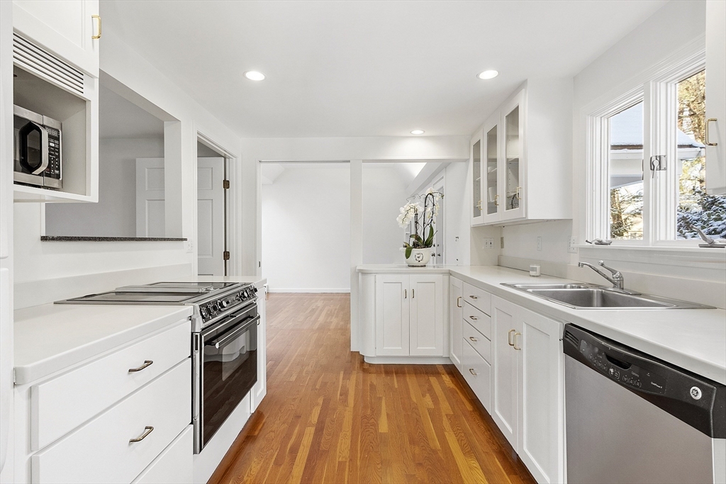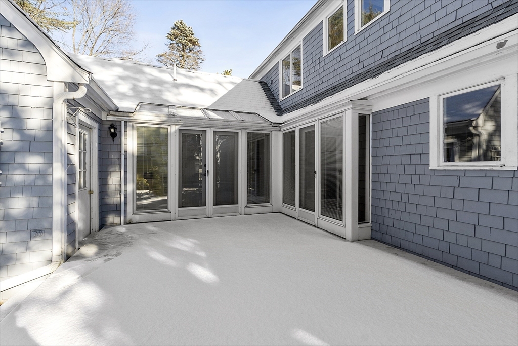 Don't miss this bright and charming, well-maintained 4 bd center chimney Cape on a quiet corner lot in an exquisite setting on The Ridge in Concord. The well-designed interior features gleaming hardwood floors throughout, a first-floor wing w/ 2 bedrooms and living and dining room both with fireplaces. A side entrance offers an adorable heated mudroom w/built-ins and seating. The family room and dining room open through French doors to a back deck overlooking a large, flat, partially fenced private yard. The efficient galley-style kitchen connects to both the dining room and family room, where a small bar offers a cozy spot for coffee or a quick snack. Upstairs are two generous bedrooms and bath.The basement offers excellent expansion potential and includes a third5 fireplace. Two-car garage w/loft above for added storage.Located in a lovely walkable neighborhood close to Concord Center, schools, and conservation trails - an ideal blend of comfort and convenience. Welcome home!