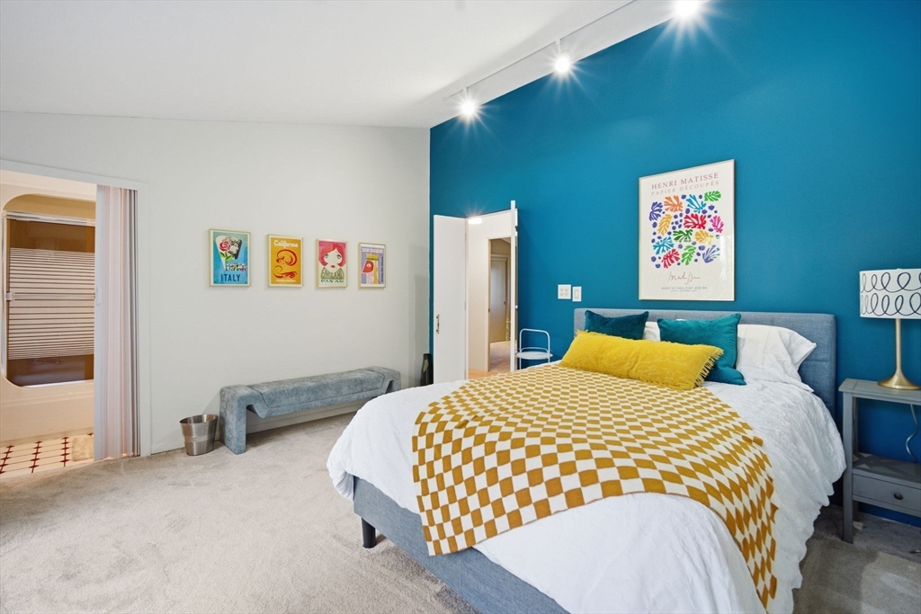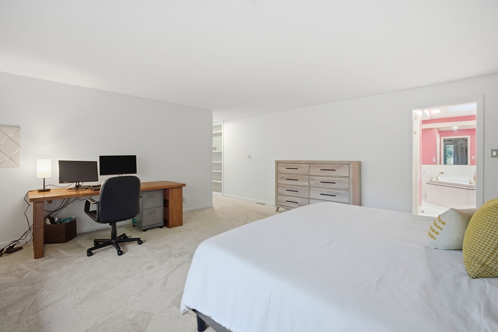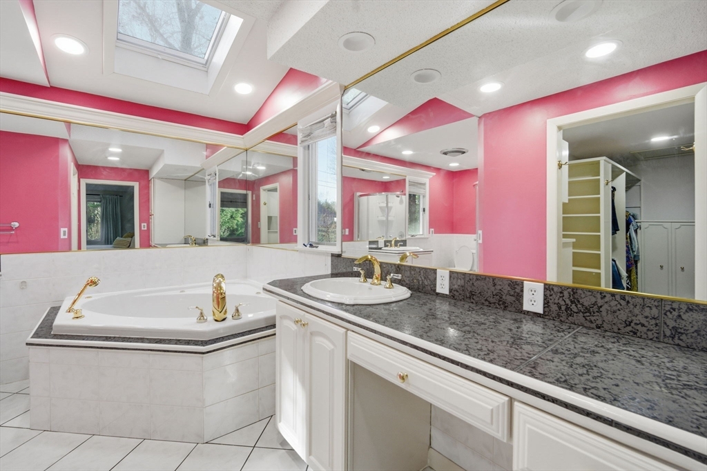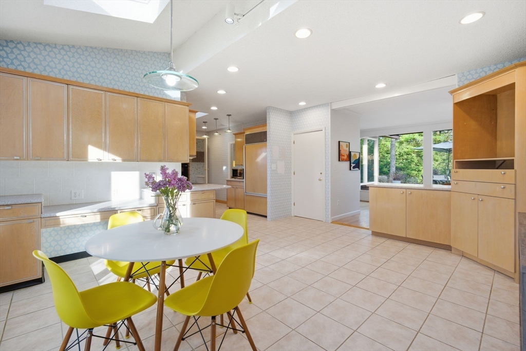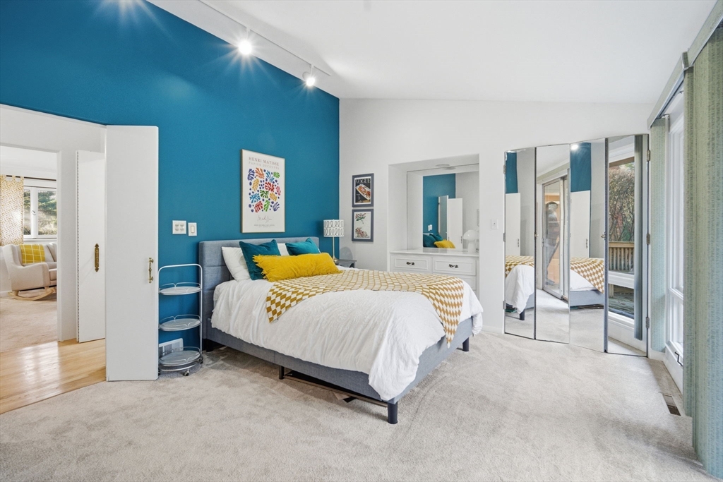 Experience exceptional one floor living in this stunning contemporary ranch in one of Longmeadow’s sought after neighborhoods in the Blueberry Hill School district. Sprawling just under 3,000 sq. ft. (not including additional finished lower-level room), this home blends modern style with effortless comfort. Soaring vaulted ceilings, skylights & oversized windows create incredible natural light throughout. The open kitchen & dining area flows to a beautiful slate patio for true indoor-outdoor living. Featuring 4 bedrooms & 4 full baths, including 3 en-suite bedrooms (One even with a private deck!) plus an extra guest bath in the hallway & half bath in the laundry/mudroom. The luxurious primary suite offers custom walk-in closet & oversized tub. Set on a landscaped, tree-lined lot with serene “secret garden” feel & oversized attached 2 car garage for convenience. All within walking distance to town shops & schools. Many freshly painted rooms & new carpets, this gem is ready to impress!