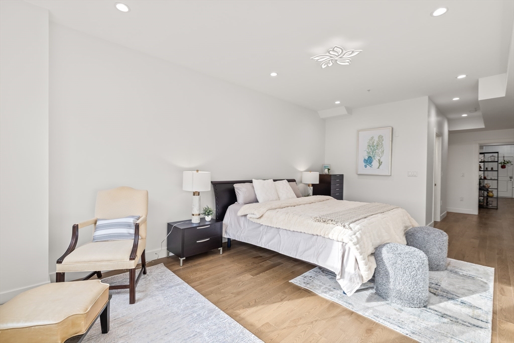 Welcome to this beautifully appointed penthouse! Located on Quincy/Braintree line, just steps from Quincy Adams Red Line T Station for an effortless commute. Experience modern living with nearly 1,600 sq ft of open-concept living space with soaring 9 ft ceilings. The inviting foyer leads to a chef-inspired open kitchen, perfect for hosting friends and family, a stylish dining area for memorable gatherings, and a spacious living room designed for relaxation, all framed by oversized windows with stunning seasonal views. The master suite is conveniently located adjacent to the living room, while a large second bedroom, ideal for guests, a home office, or a growing family, is tucked quietly behind the kitchen. Additional features include in-unit laundry, ample storage, one garage parking, one outdoor parking, and elevator. Close to BJ’s, supermarkets, restaurants, mall and immediate access to I-93 and Rt 3. Don’t miss your chance to make this exceptional penthouse your new home!