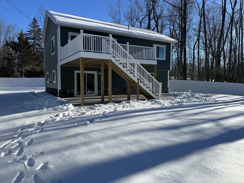 Be the first to live in this newly built split-entry home in Becket. Located in the Sherwood Forest community, it is just a few minute walk away from the private beach and lake. A private, fenced-in yard with gated access welcomes you on arrival. Exterior highlights include a deck overlooking serene wooded views and a covered patio below—perfect for outdoor entertaining. The main level offers an open-concept layout with a light-filled living room flowing into the dining area and kitchen. The kitchen features an island, new stainless steel appliances, shaker cabinets, and quartz countertops. This level also includes two bedrooms and a full bath. The partially finished lower level provides additional living space with a bonus room, a full bath with laundry, and interior access to the attached one-car garage. Additional features include hardwood flooring throughout, tile-finished bathrooms, a subway-tiled bathtub on the main level, and a high-efficiency hybrid heat-pump water heater.