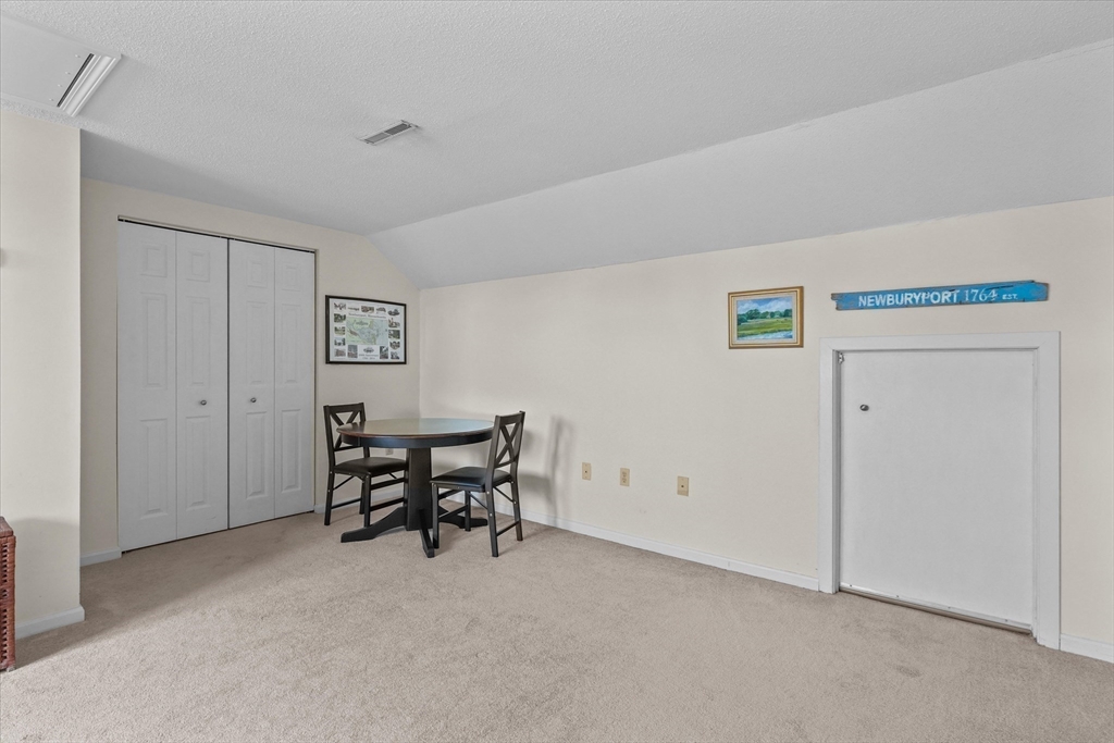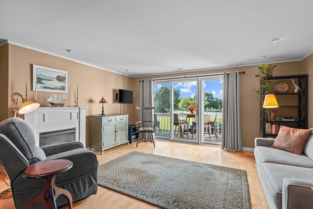 Welcome to waterfront living at Rivers Edge, one of Newburyport’s most desirable townhouse communities, perfectly positioned between Cashman Park and the vibrant downtown. The sun-filled main level is all about the views, capturing uninterrupted, year-round water vistas. Enjoy your morning coffee on the private deck or take in the scenery from indoors through the expansive new glass slider. The updated kitchen offers abundant cabinetry, granite countertops, and stainless-steel appliances—all illuminated by natural light streaming through oversized windows. Upstairs, the primary bedroom provides a peaceful retreat with more sweeping water views, an en-suite bath, and the convenience of same-level laundry. A welcoming den on this floor offers the perfect spot to unwind, read, or work. The third level adds wonderful flexibility with a spacious skylit bedroom, a full bath, and easily accessible attic storage. Just steps from the Rail Trail and moments from Newburyport’s shops & restaurants