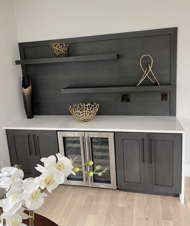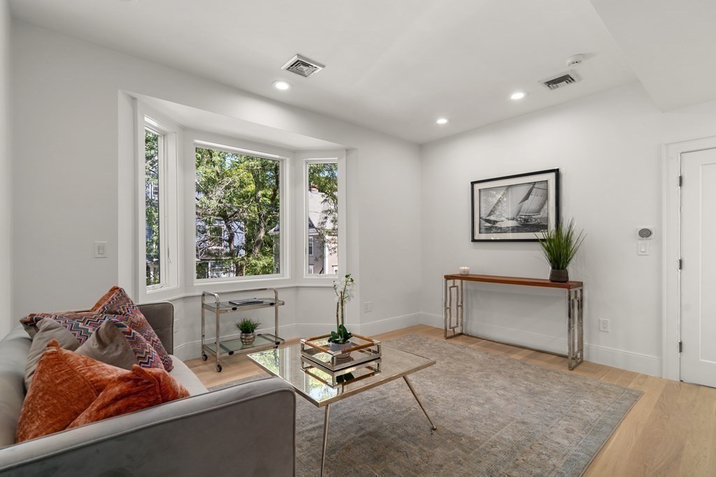 Sophisticated contemporary home totally transformed in 2022 by a prestigious luxury developer. Meticulously crafted for modern living with 5500+ sq ft including two additional suites with kitchenettes & private entrances designed as In-Law/Au-Pair apartment + home office. Spectacular living room with 6' linear gas fireplace complimented by a 8' wide granite wall. Extraordinary chef's kitchen with quartz countertops & massive 10 foot center island. Wolf/Subzero/Thermador appliances, 2 dishwashers, 2 sinks, professional hood, micro lift, dual wine fridge & breakfast sitting area. Dramatic primary bedroom suite with marble fireplace, walk-in closet, balcony & spa-like bath with glass enclosed shower & soaking tub. Top floor offers yoga/studio/office. Sprawling roof deck with breathtaking views of downtown Boston & Prudential. Exterior bluestone patio, gas fireplace perfect for entertaining. 6 parking (2 garage), smart home technology & surround sound complete this exceptional residence!